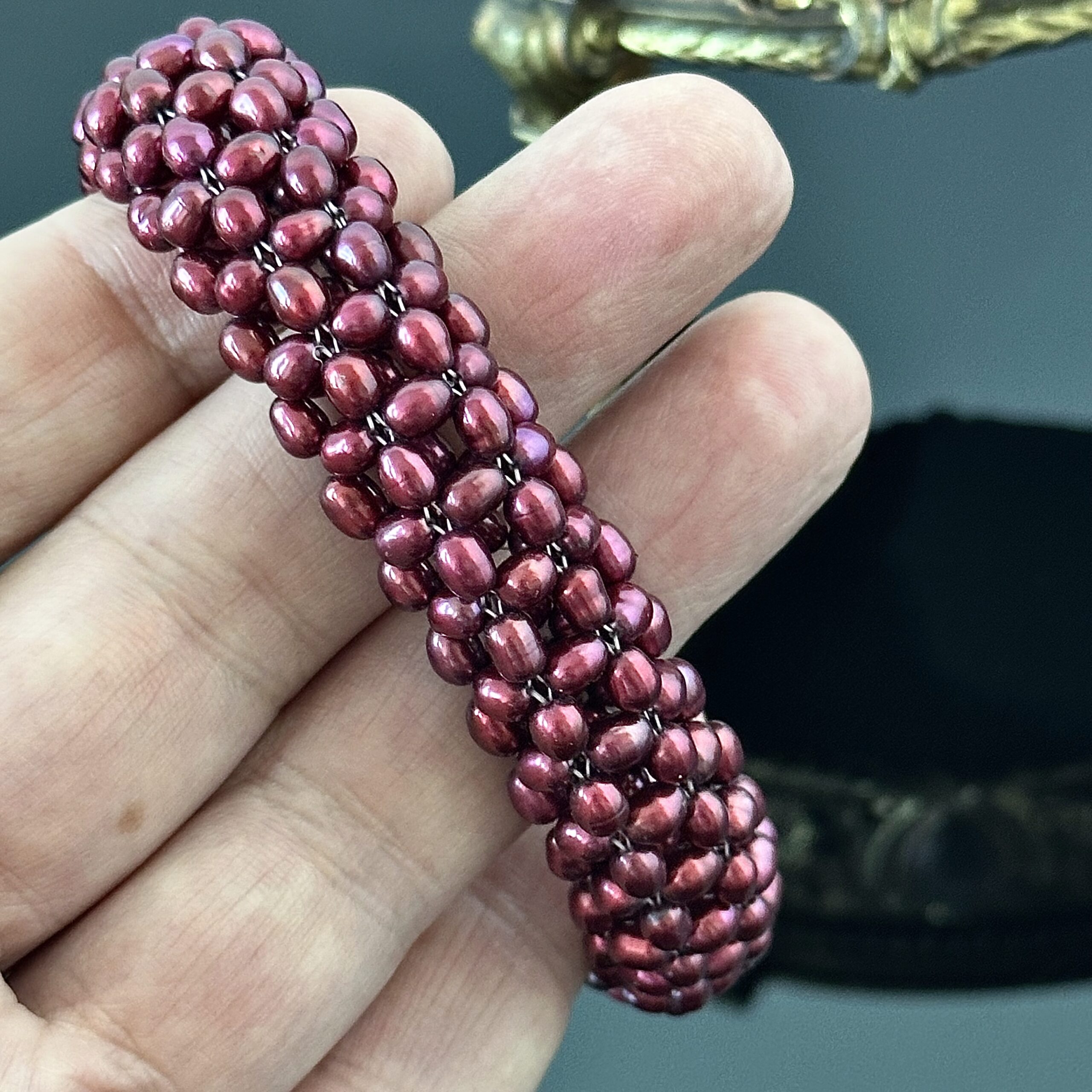 Naturalne Perły barwione na kolor metalicznego burgundu