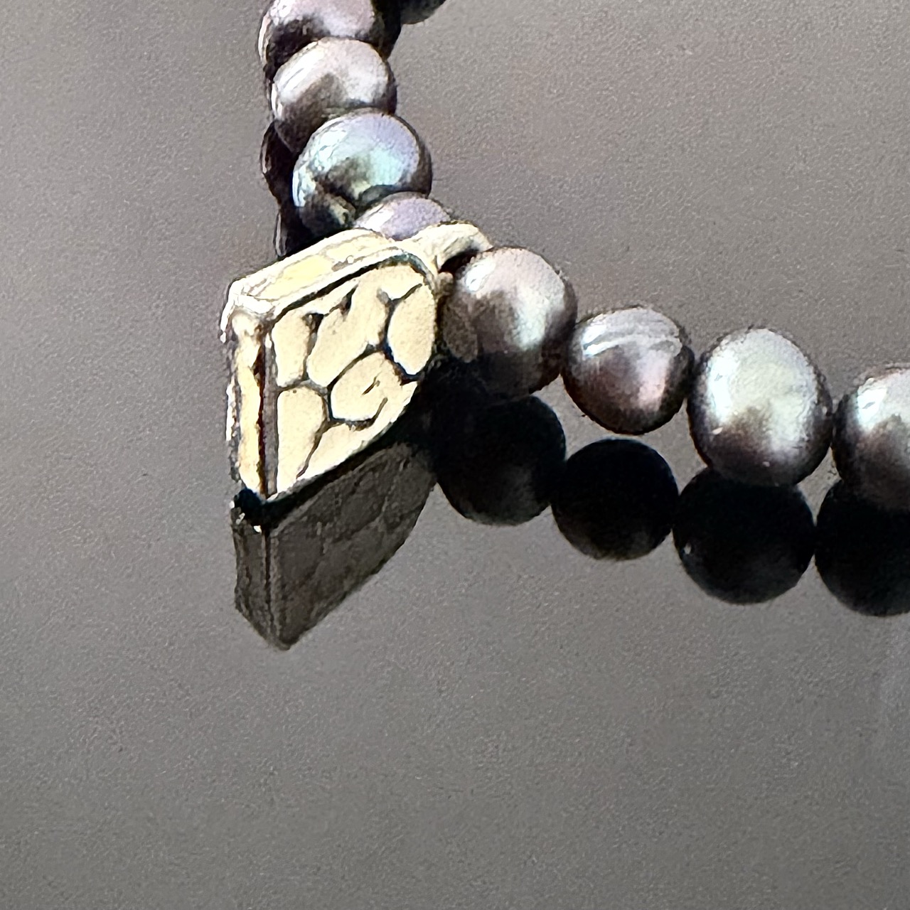 Bransoletka z czarnych pereł barokowych i srebrnego elementu z emalią