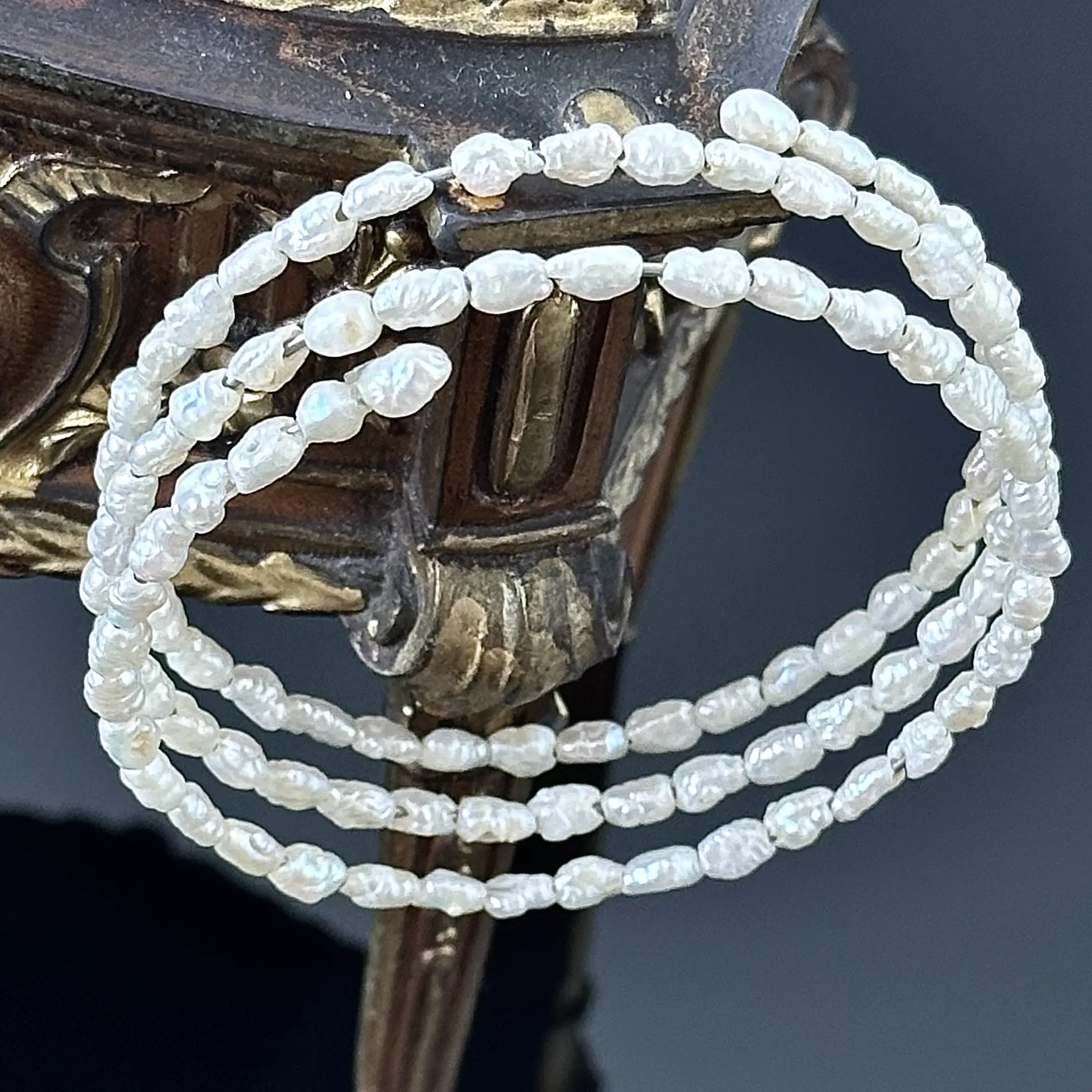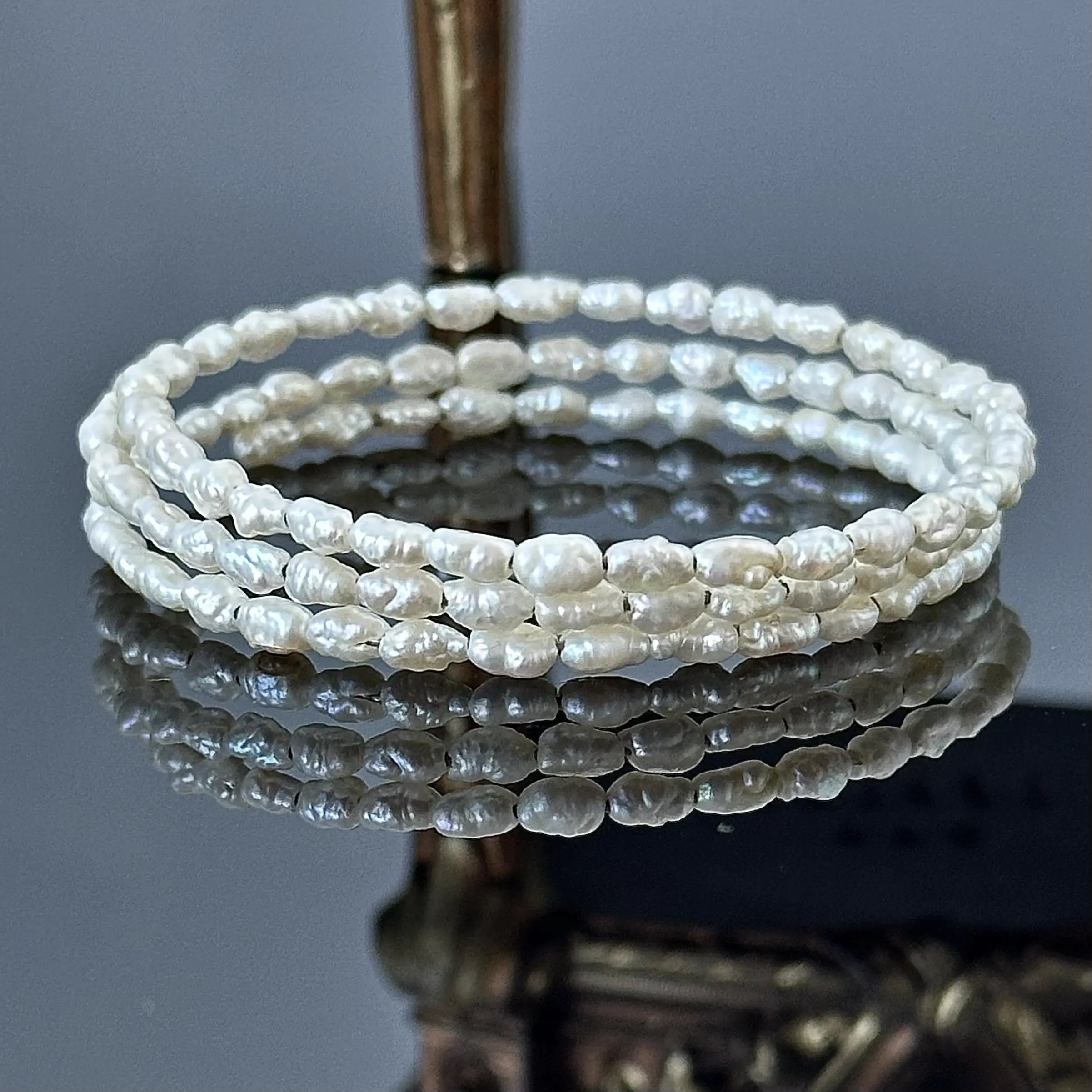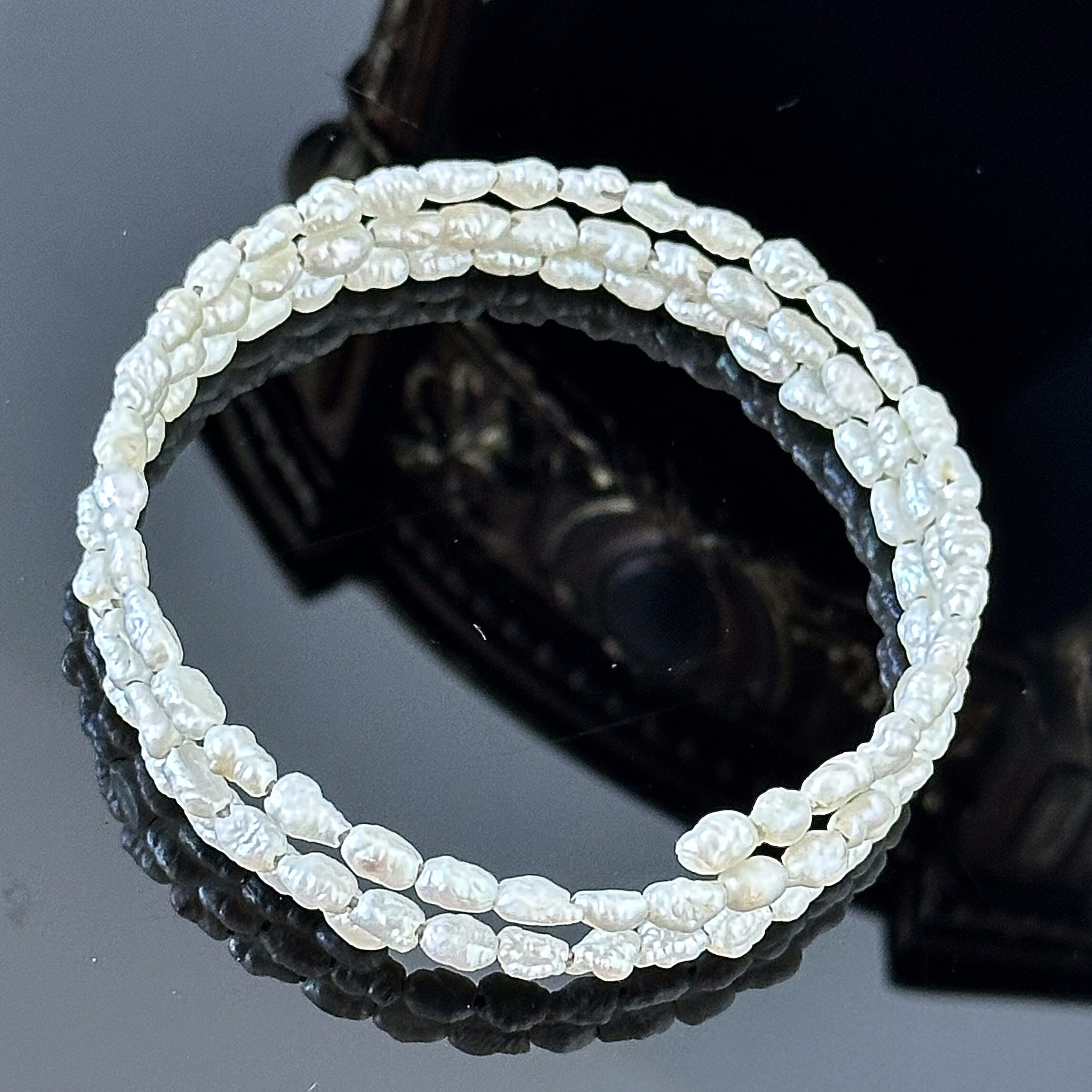 Bransoletka z naturalnymi Perłami. Bransoletka ta, to wspaniały przykład wzornictwa sztuki Art Deco, pochodzi z Londynu gdzie została wykonana ok. 1980 roku. Artysta wykonał trzyrzędową bransoletkę i połączył wszystkie koraliki sprężynującym drutem. Całość znajduje się w idealnym stanie i jest godna polecenia.