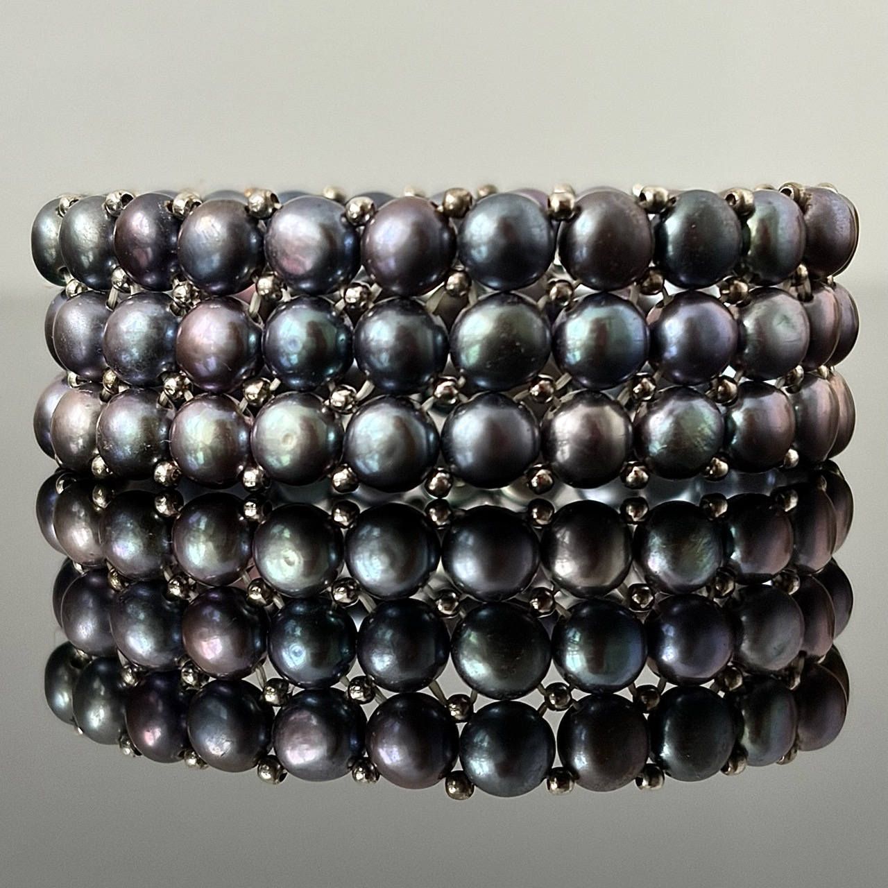 Bransoletka z naturalnych pereł w kolorze grafitowym