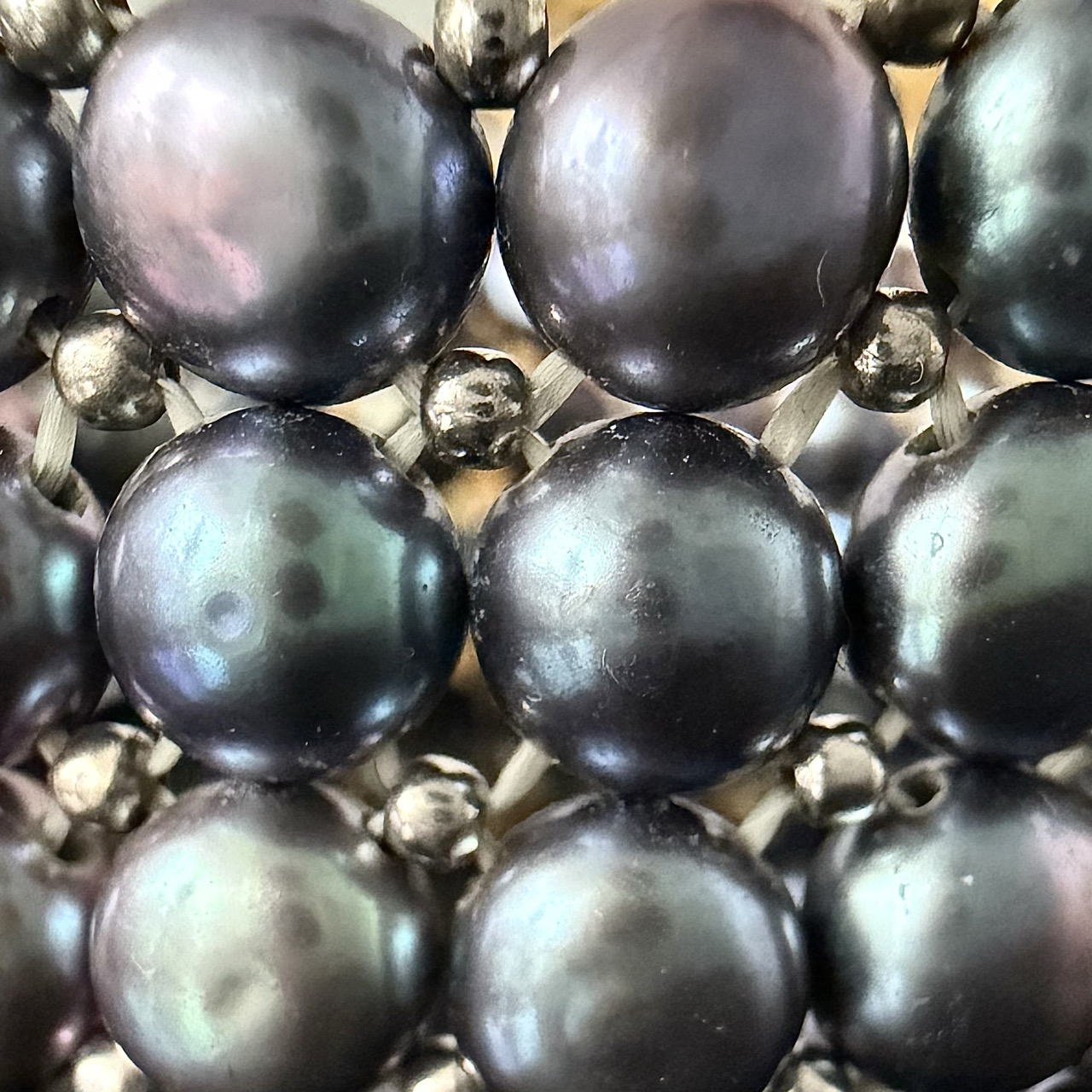 Bransoletka z czarnych pereł barokowych i srebrnego elementu z emalią