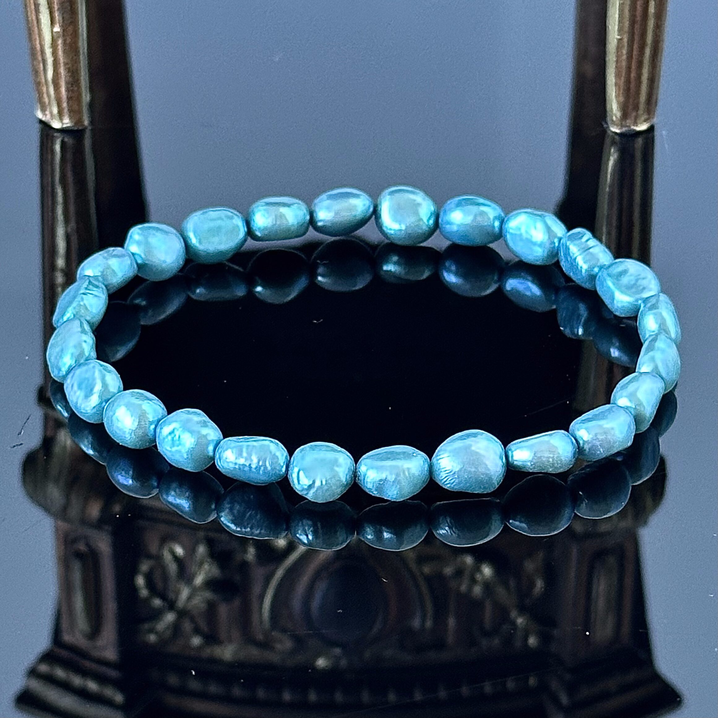 Bransoletka z dużymi naturalnymi Perłami barwionymi. Bransoletka ta, to wspaniały przykład wzornictwa sztuki Art Deco, pochodzi z Londynu gdzie została wykonana ok. 1980 roku. Artysta wykonał jednorzędową bransoletkę i połączył wszystkie koraliki gumką jubilerską. Całość znajduje się w idealnym stanie i jest godna polecenia.