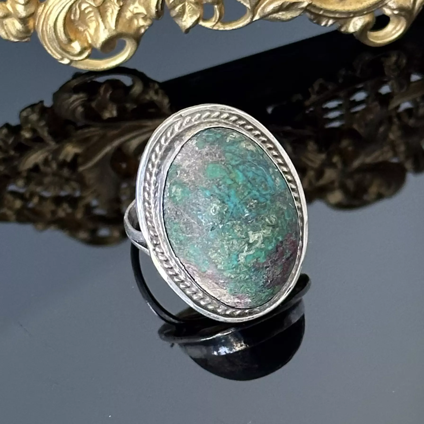 Chalkopiryt to wyjątkowo rzadko wykorzystywany kamień w jubilerstwie, oprawiony w srebr próby 925