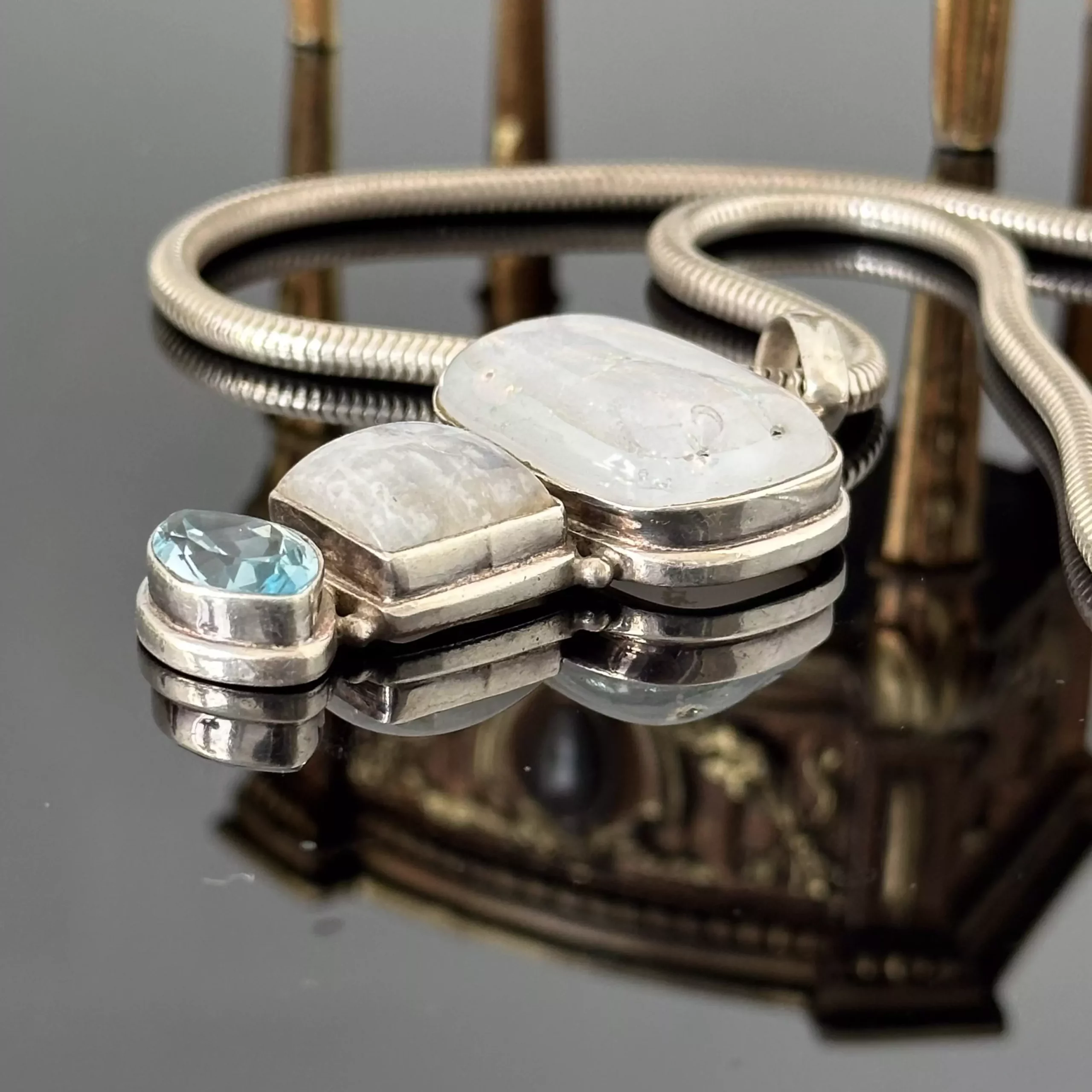 Naszyjnik srebrny z Opalem, Kamieniem Księżycowym i Akwamarynem