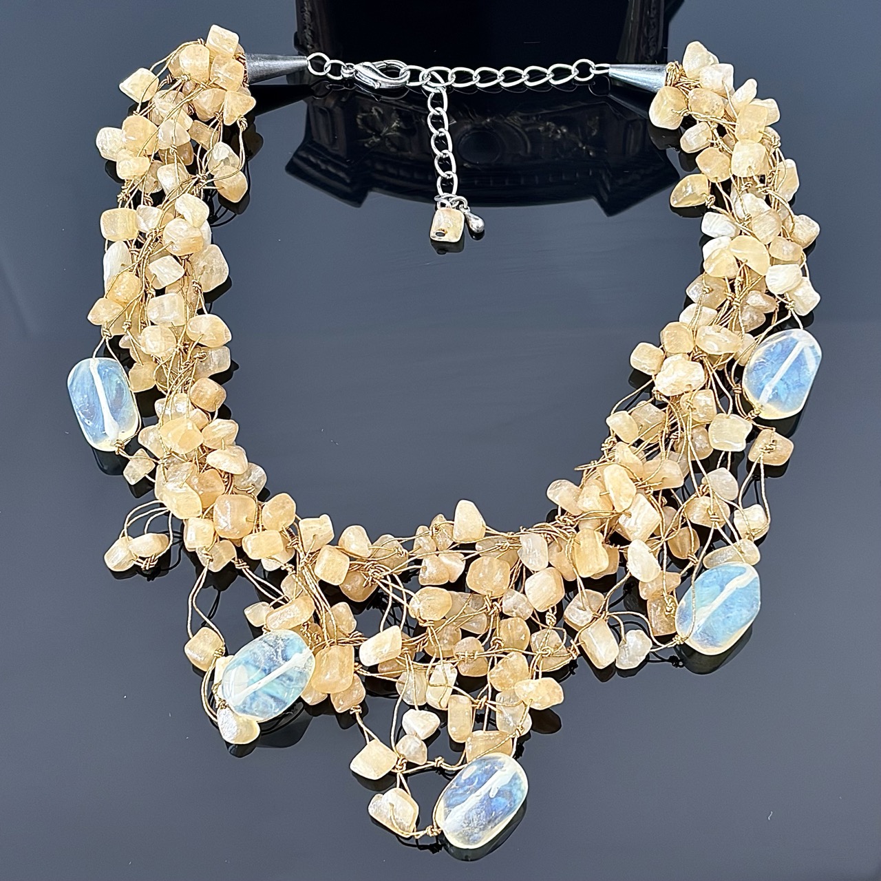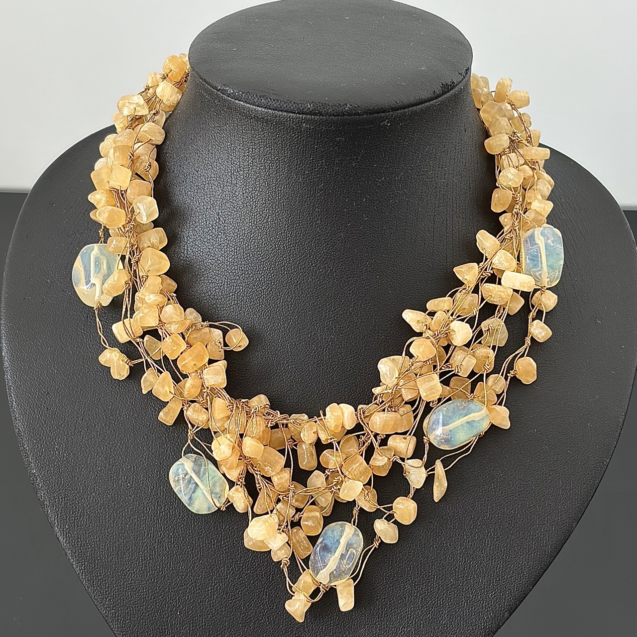 Artystyczny naszyjnik z surowych kamieni cytrynu