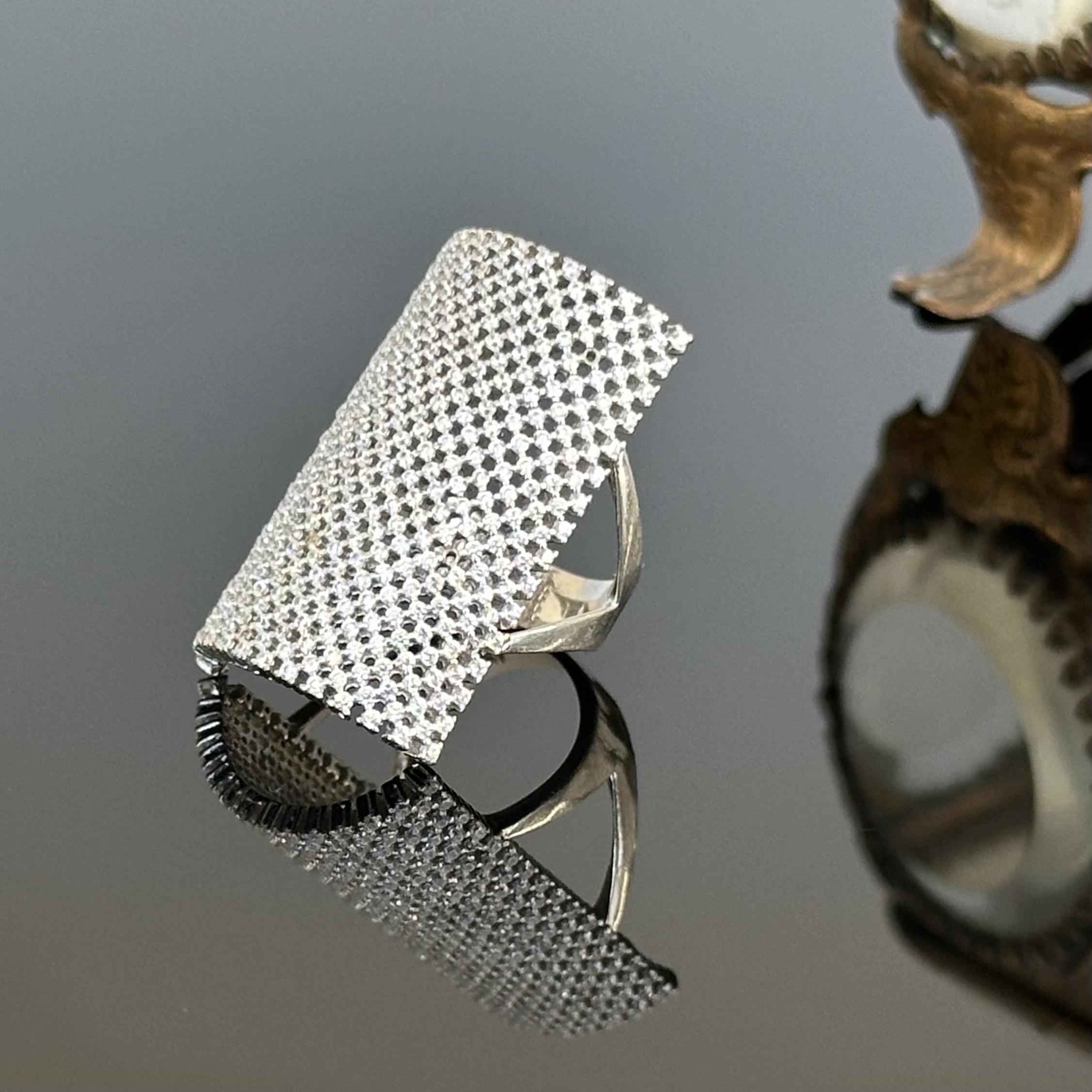 Pierścionek jak koszyk pełen cyrkonii.
