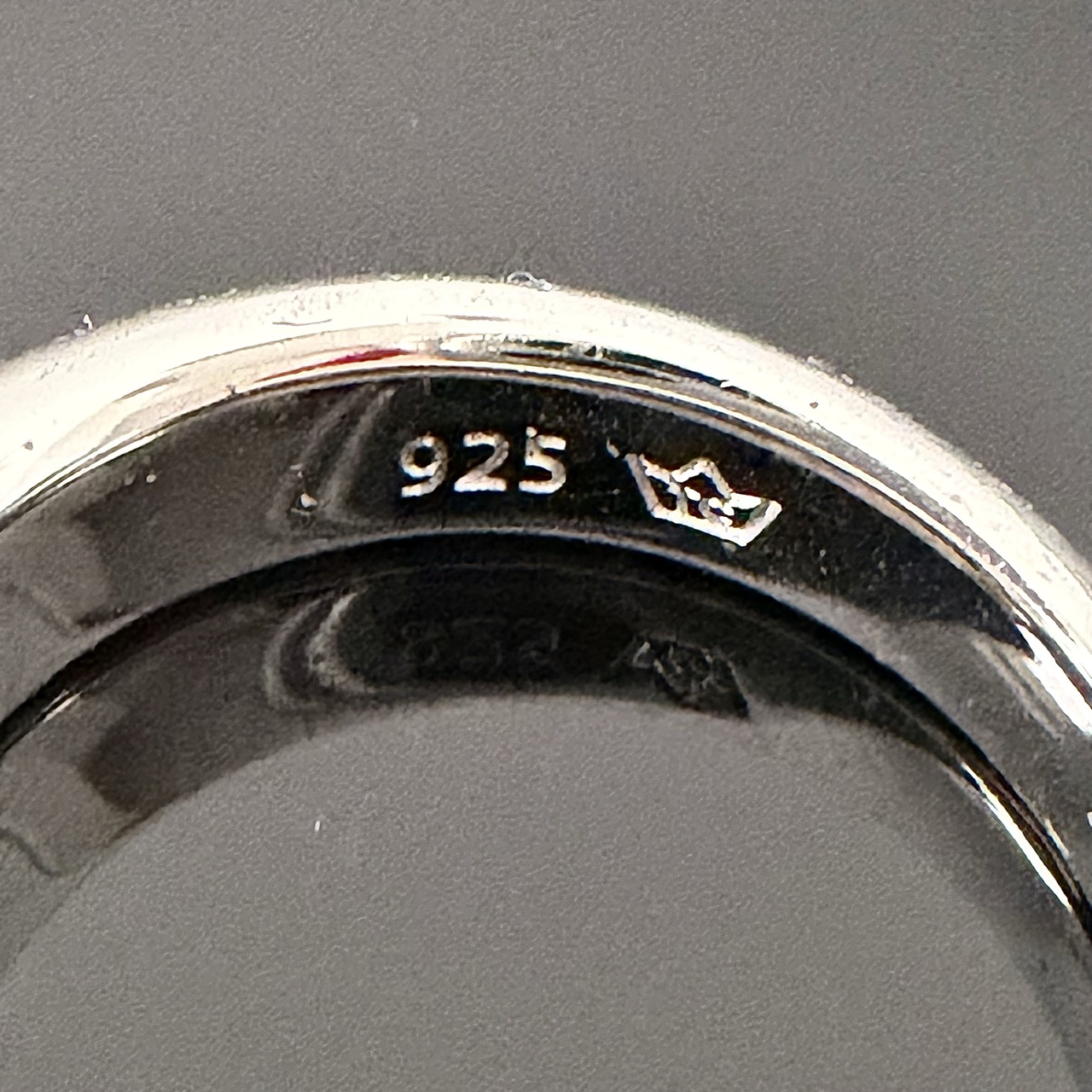 Pierścionek został wykonany z srebra próby 925 z czerwonym rubinem w kształcie serca