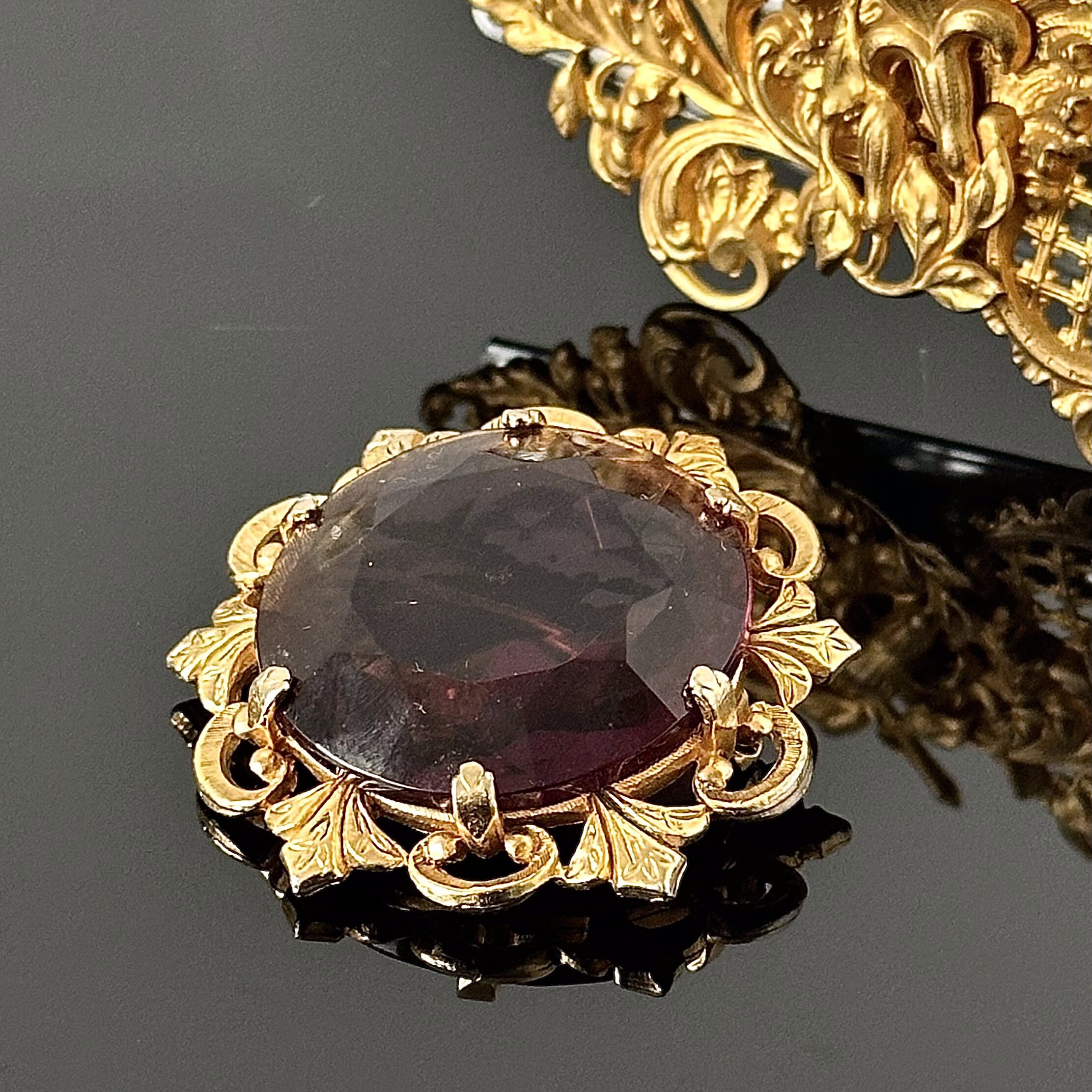 Broszka znajduje się w stanie dobrym, posiada kilka drobnych otarć na kamieniu
