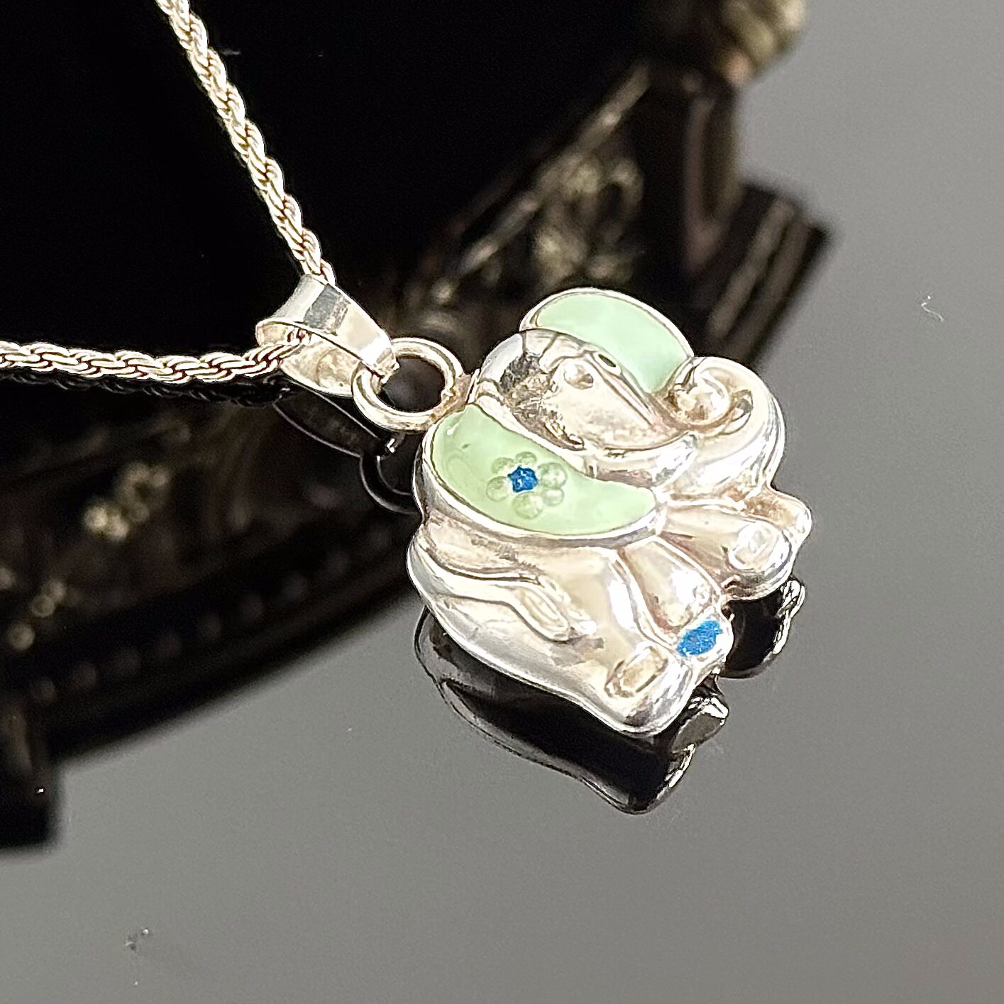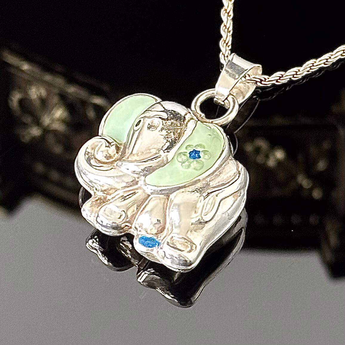 Słoń przynoszący szczęści ze skierowaną trąbą ku górze, wykonany z srebra próby 925