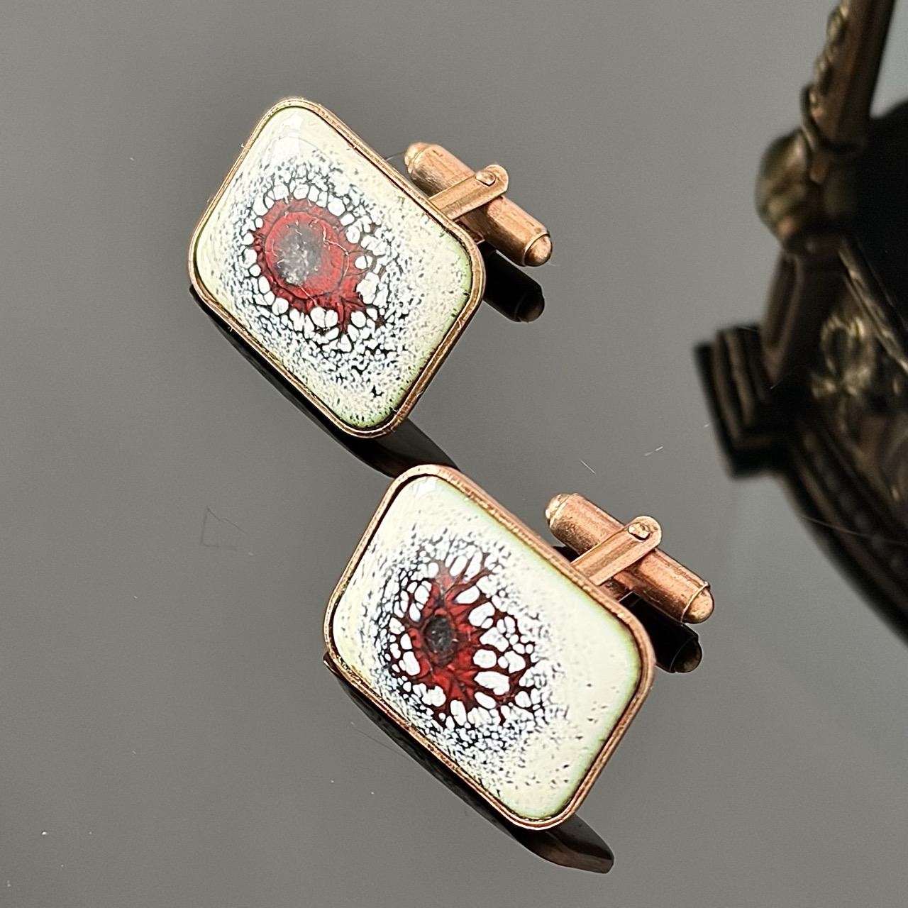 Wykonane w geometrycznej oprawie w czerwono białej tonacji