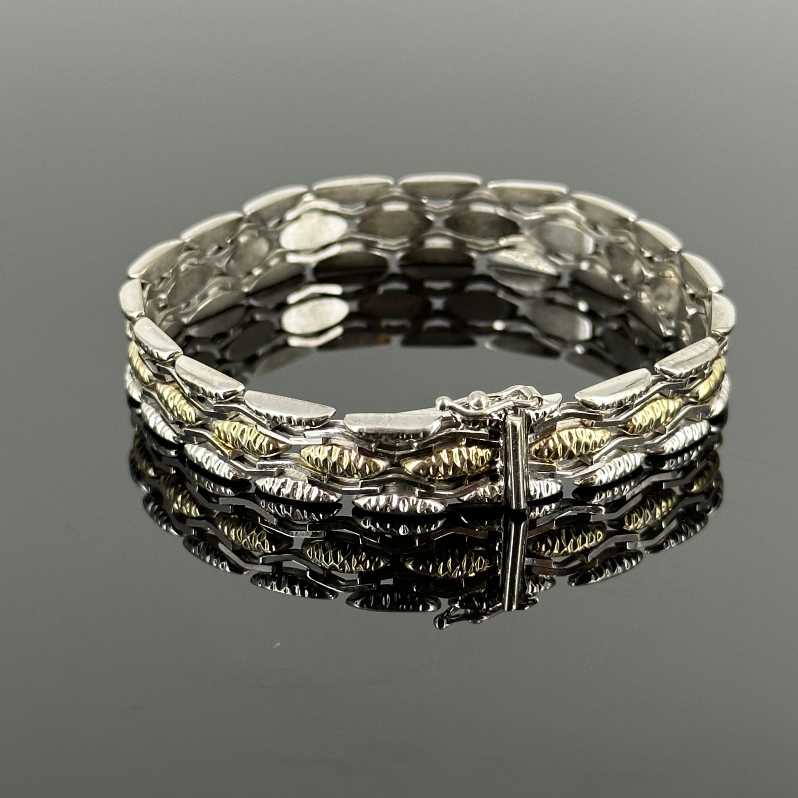 Srebrna bransoletka Art Deco częściowo pozłacana, próba 835