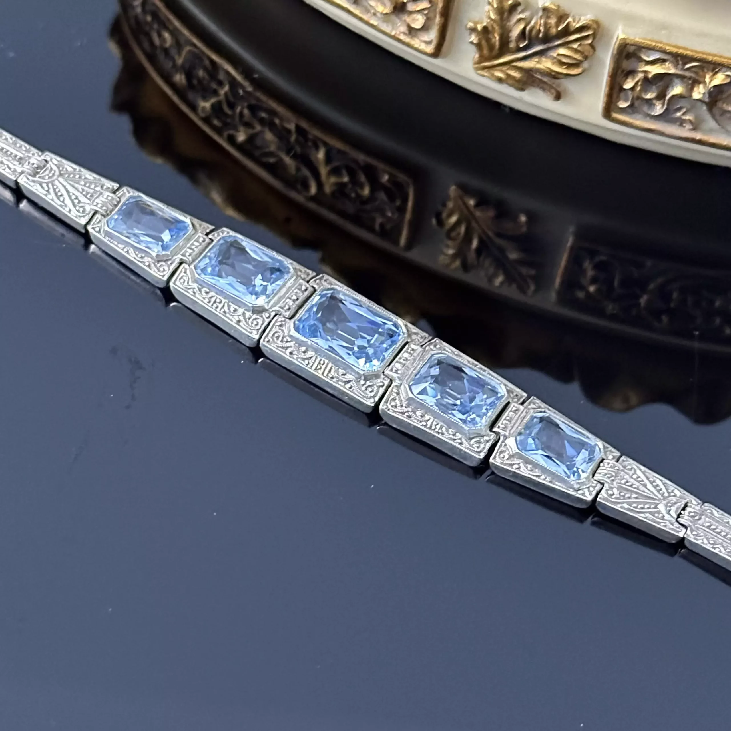 Srebrna bransoletka z Akwamarynami – oryginał Art Deco