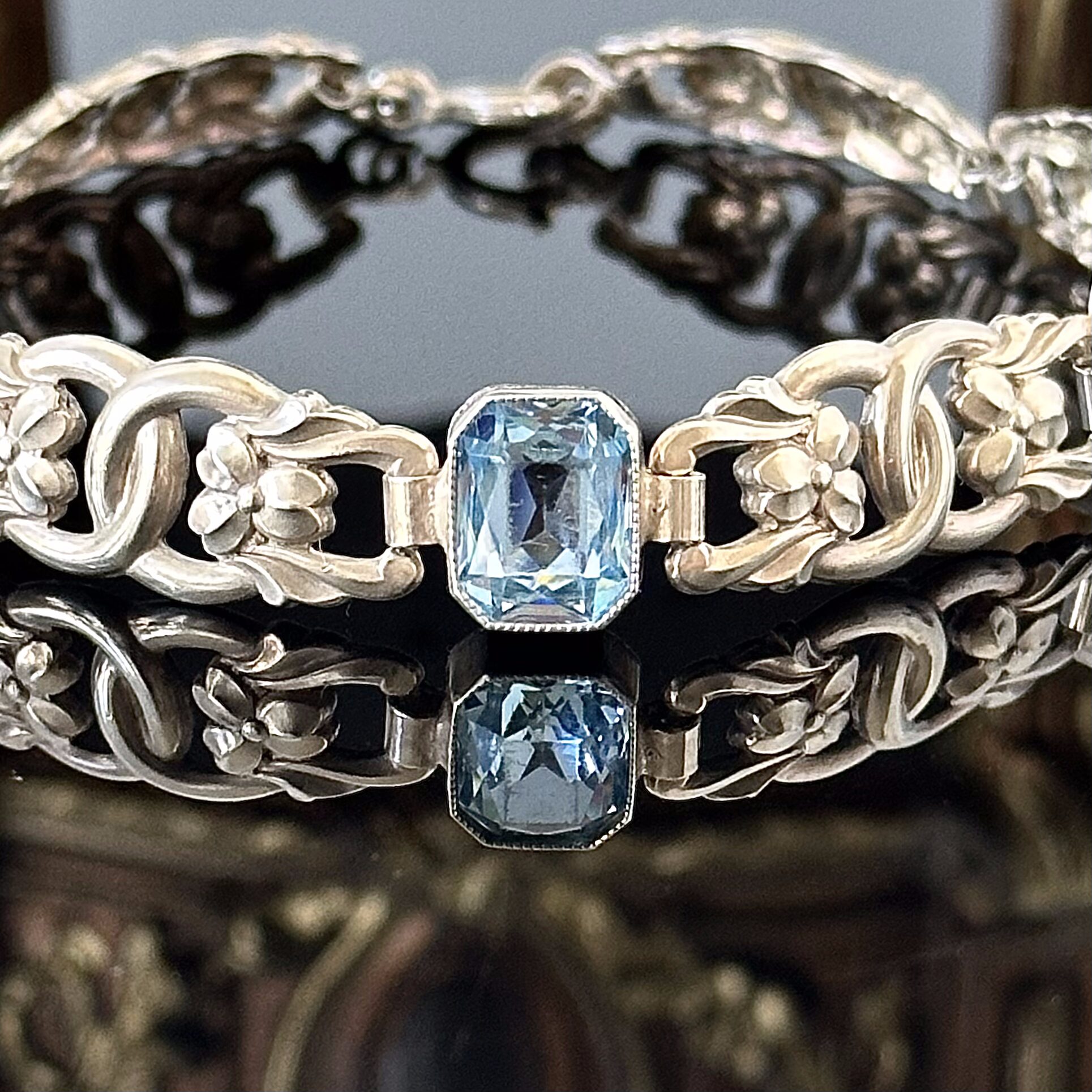 Srebrna bransoletka z Akwamarynami – oryginalna secesja