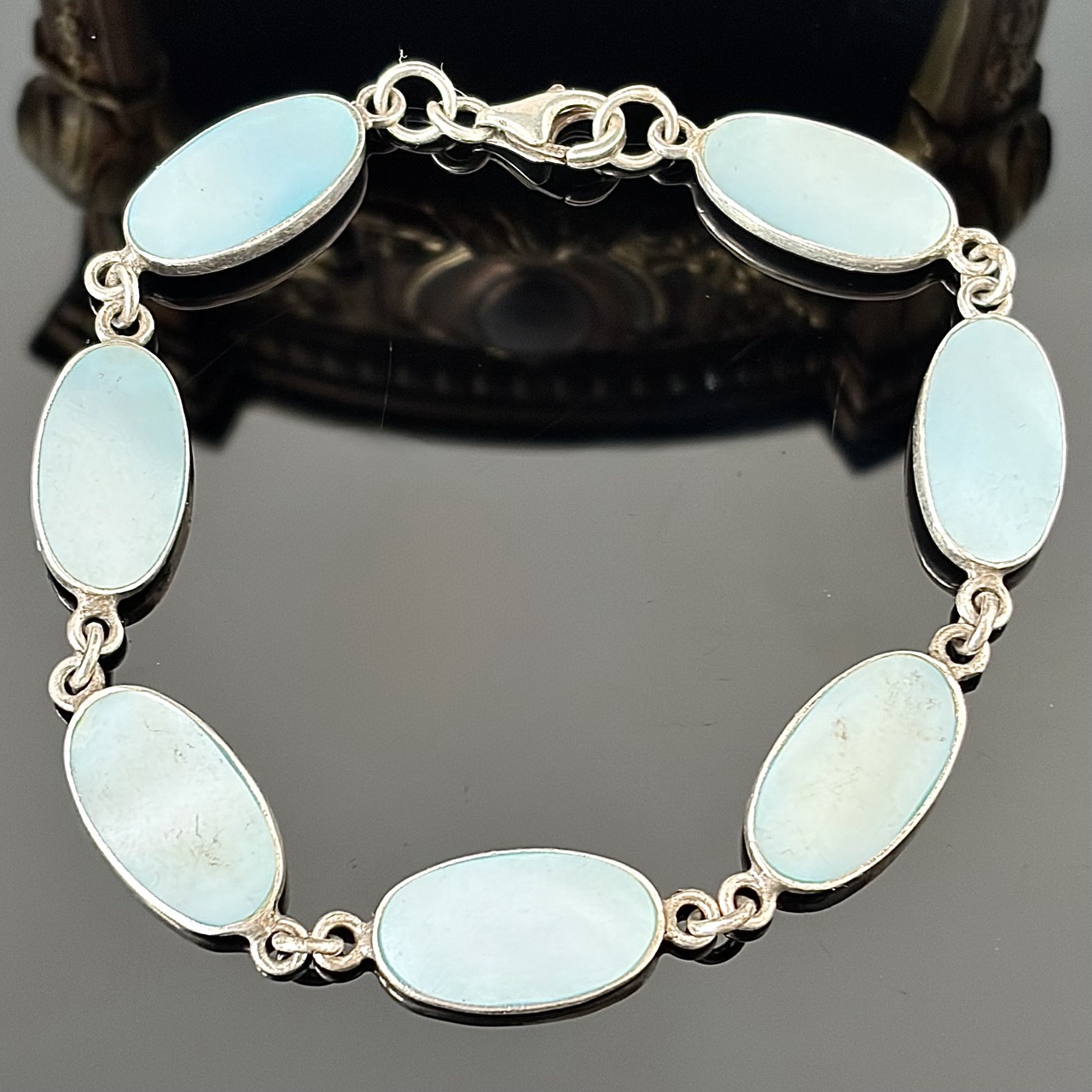 Srebrna bransoletka z masą Perłową