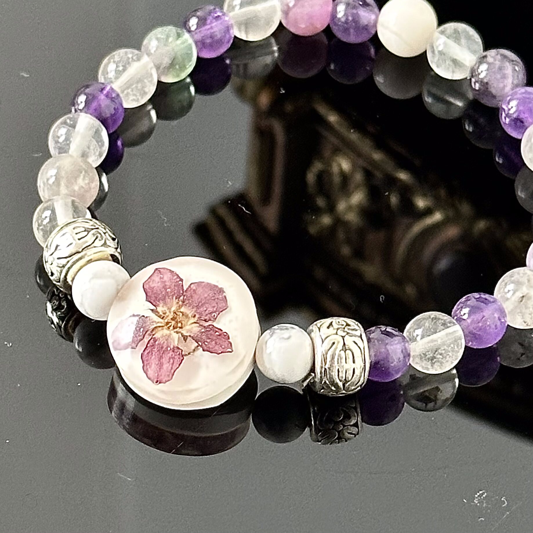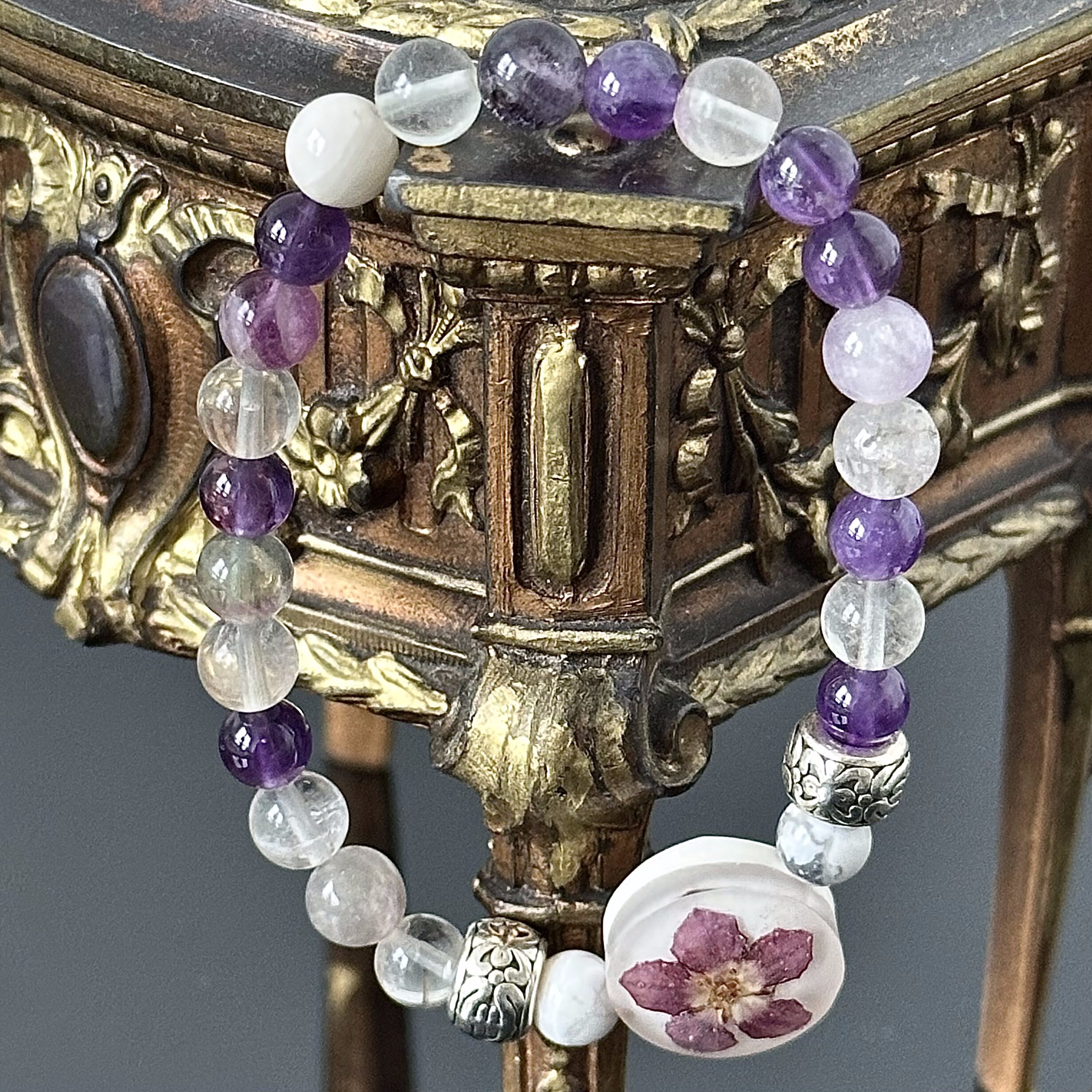 Srebrna bransoletka z naturalnym Ametystem i kamieniem Księżycowym