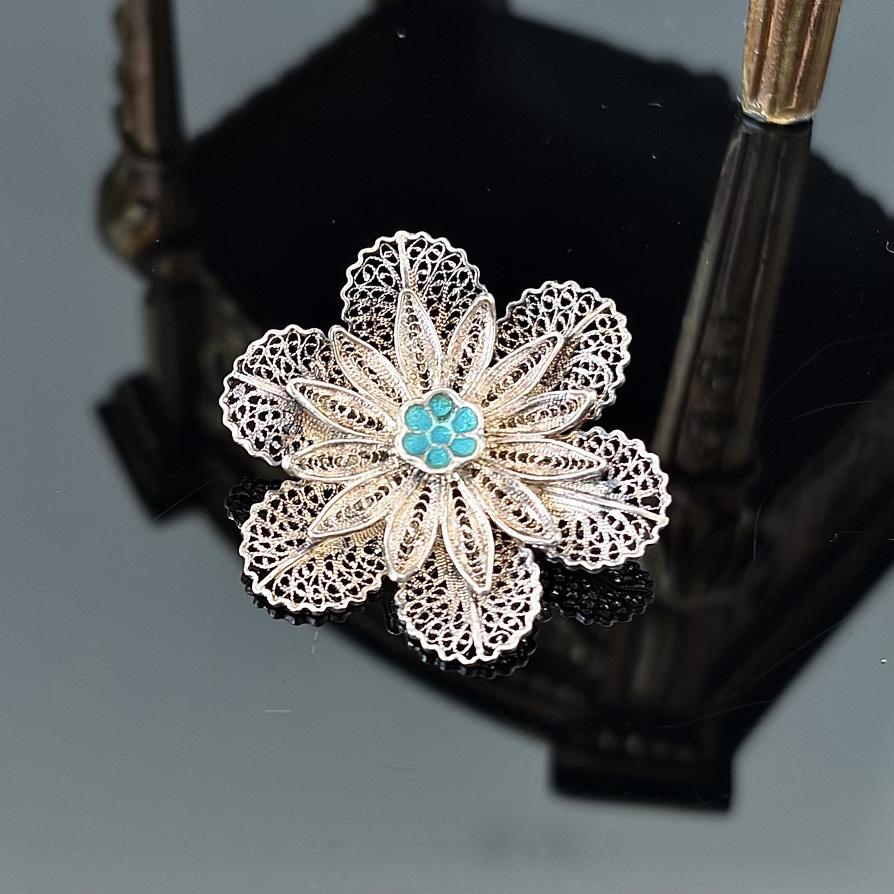 Broszka jak na swój wiek znajduje się w idealnym stanie, brak uszkodzeń, brak zarysowań, brak śladów użytkowania.
