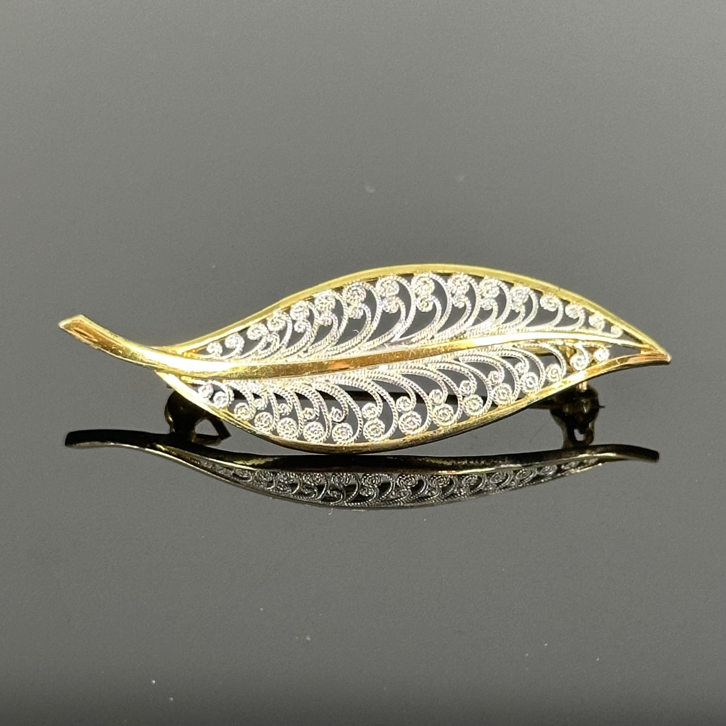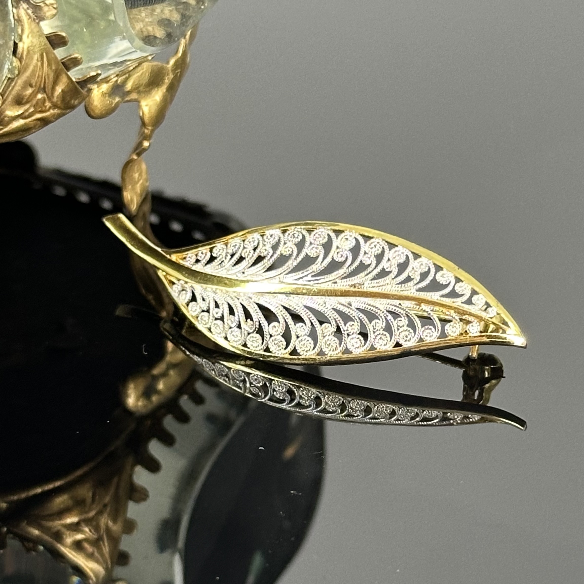 Srebrna broszka w części pozłacana