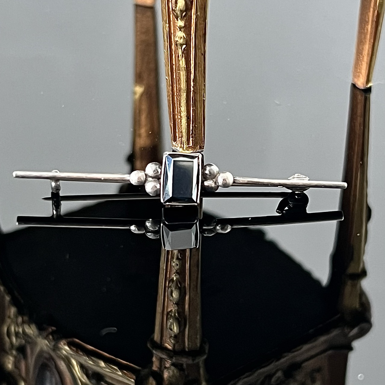 Srebrna broszka (próba 800) z Hematytem wykonana we wczesnej Secesji