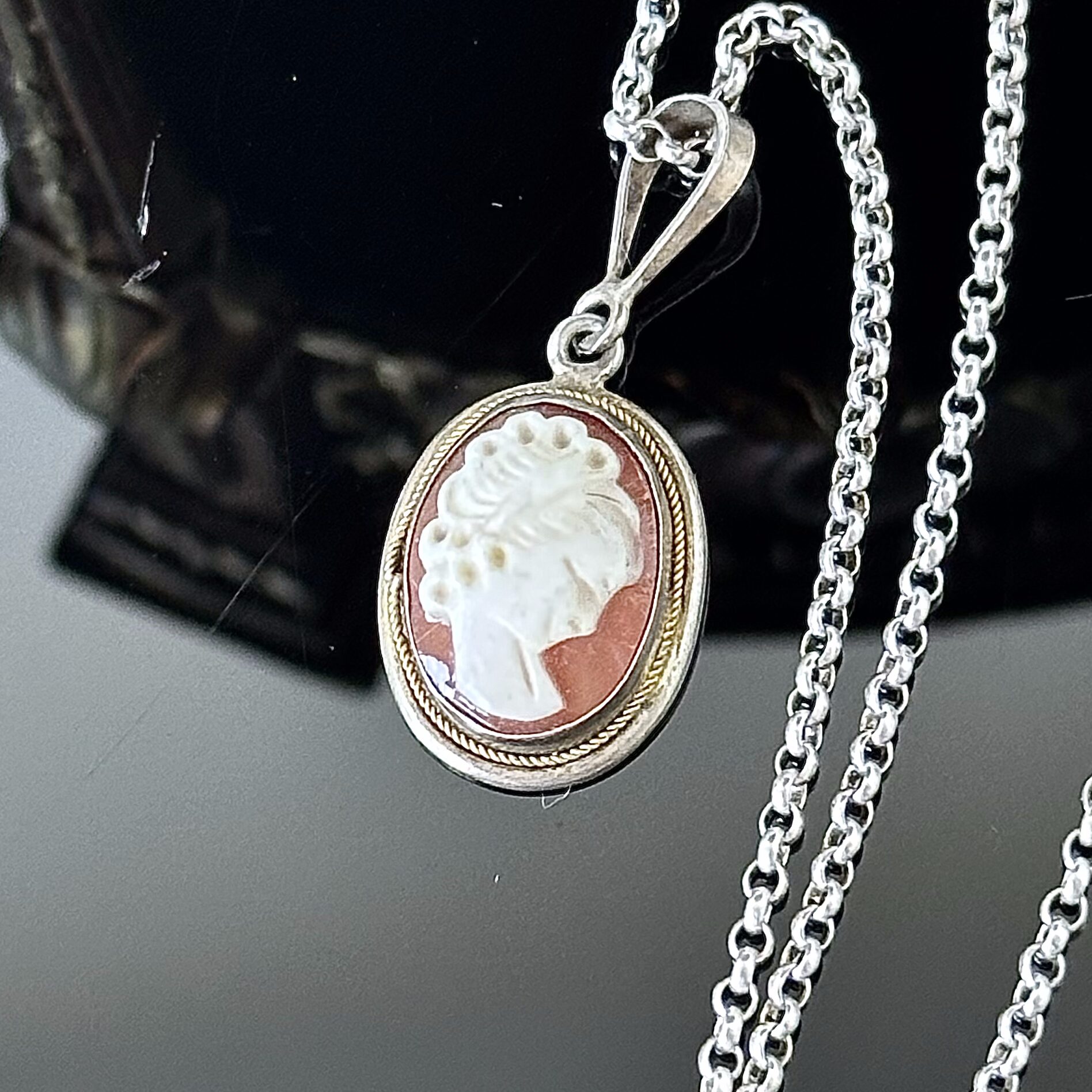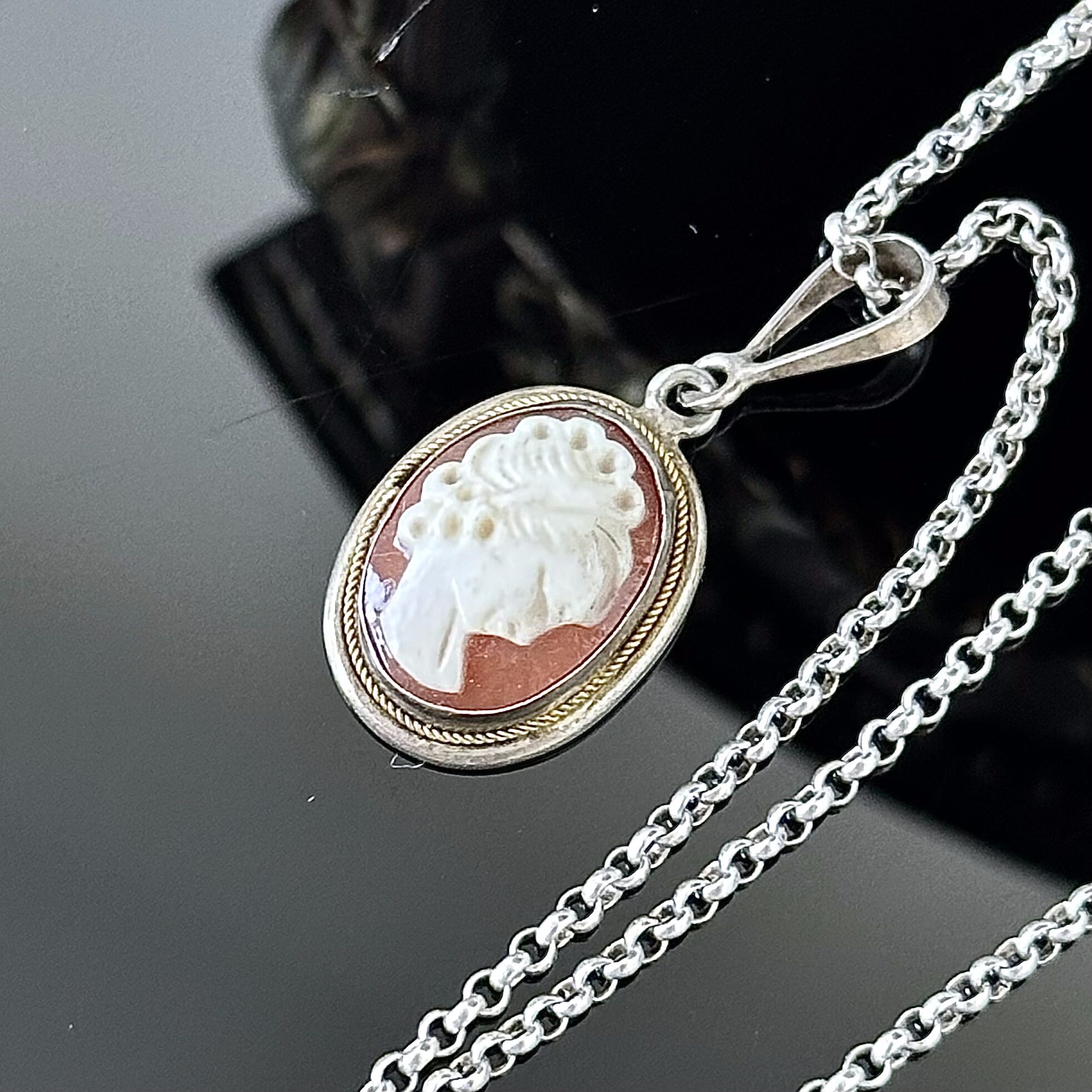 Srebro próby 800, naturalna Kamea z muszli