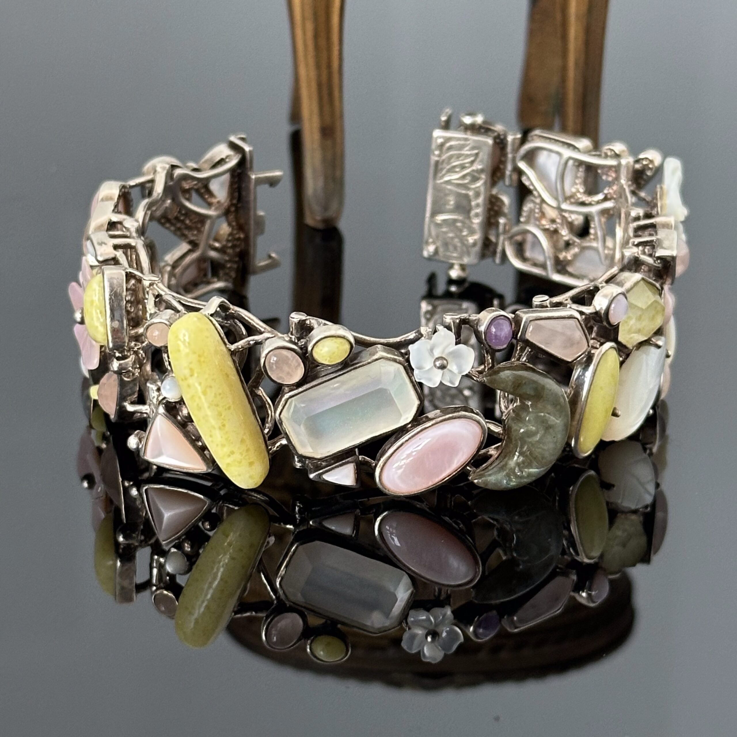 Srebro próby 925, między innymi Nefryt, Kamień Księżycowy, Kwarc Różowy, Chalcedon Żółty