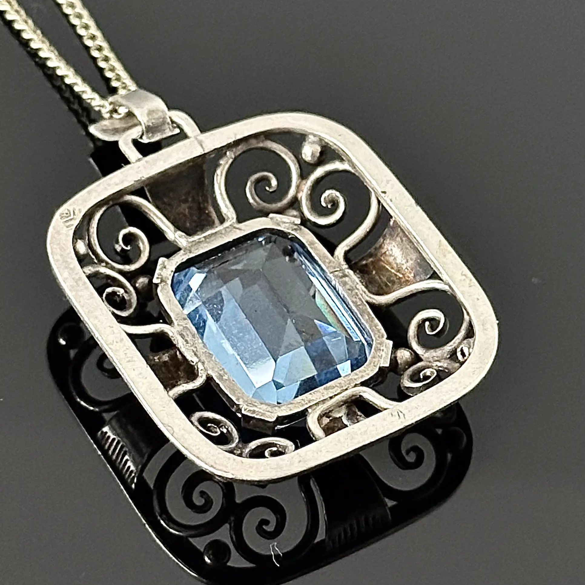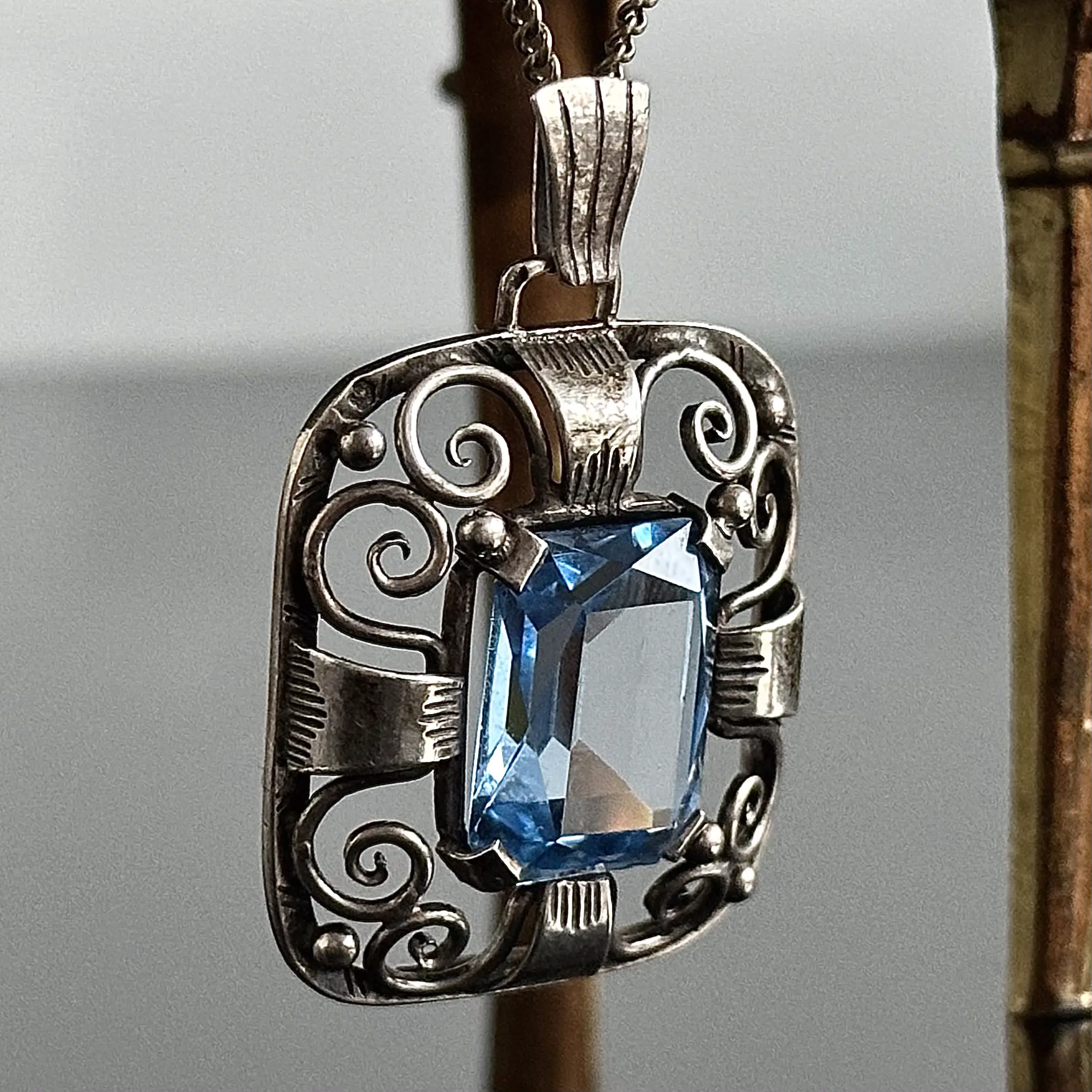 Srebrna oryginalna przywieszka secesyjna z Akwamarynem