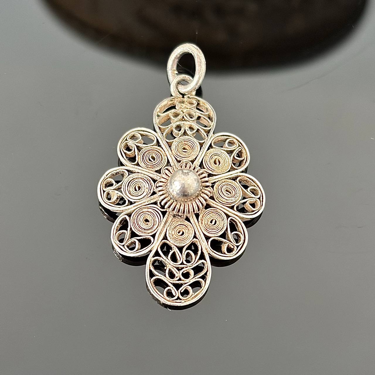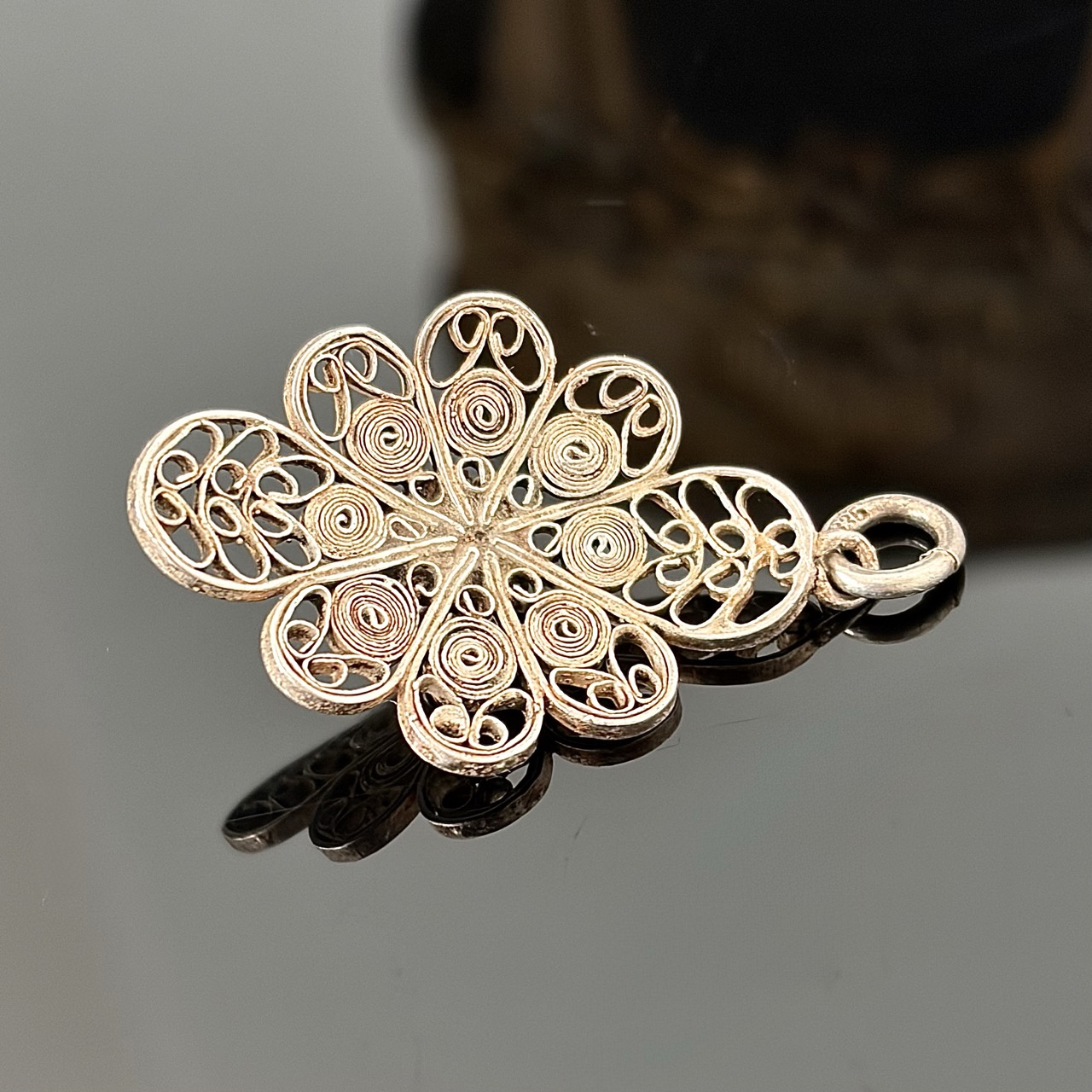 Srebrna przywieszka filigranowa w formie kwiatu