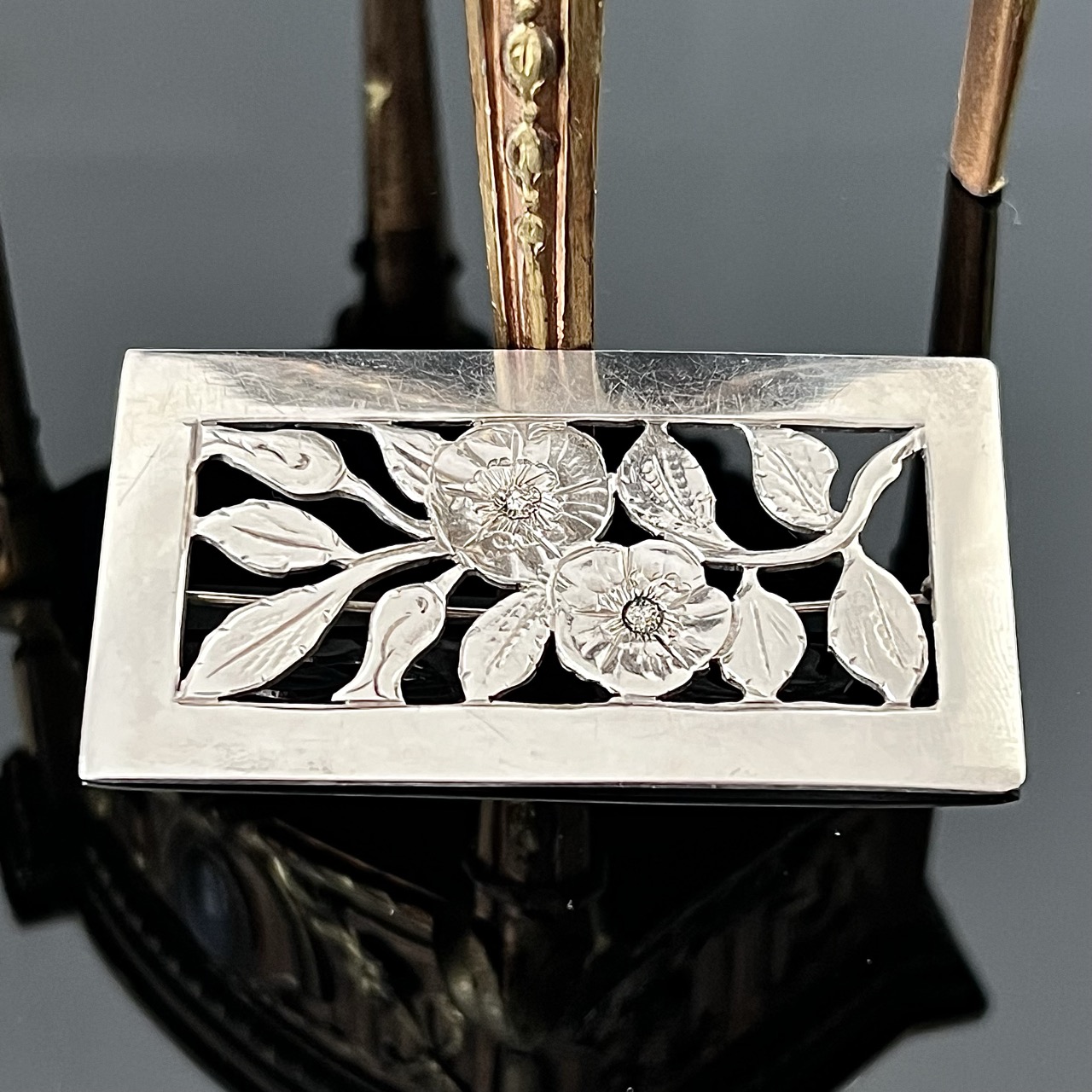 Srebrna secesyjna broszka z ok. 1910 roku, wykonana z srebra próby 800