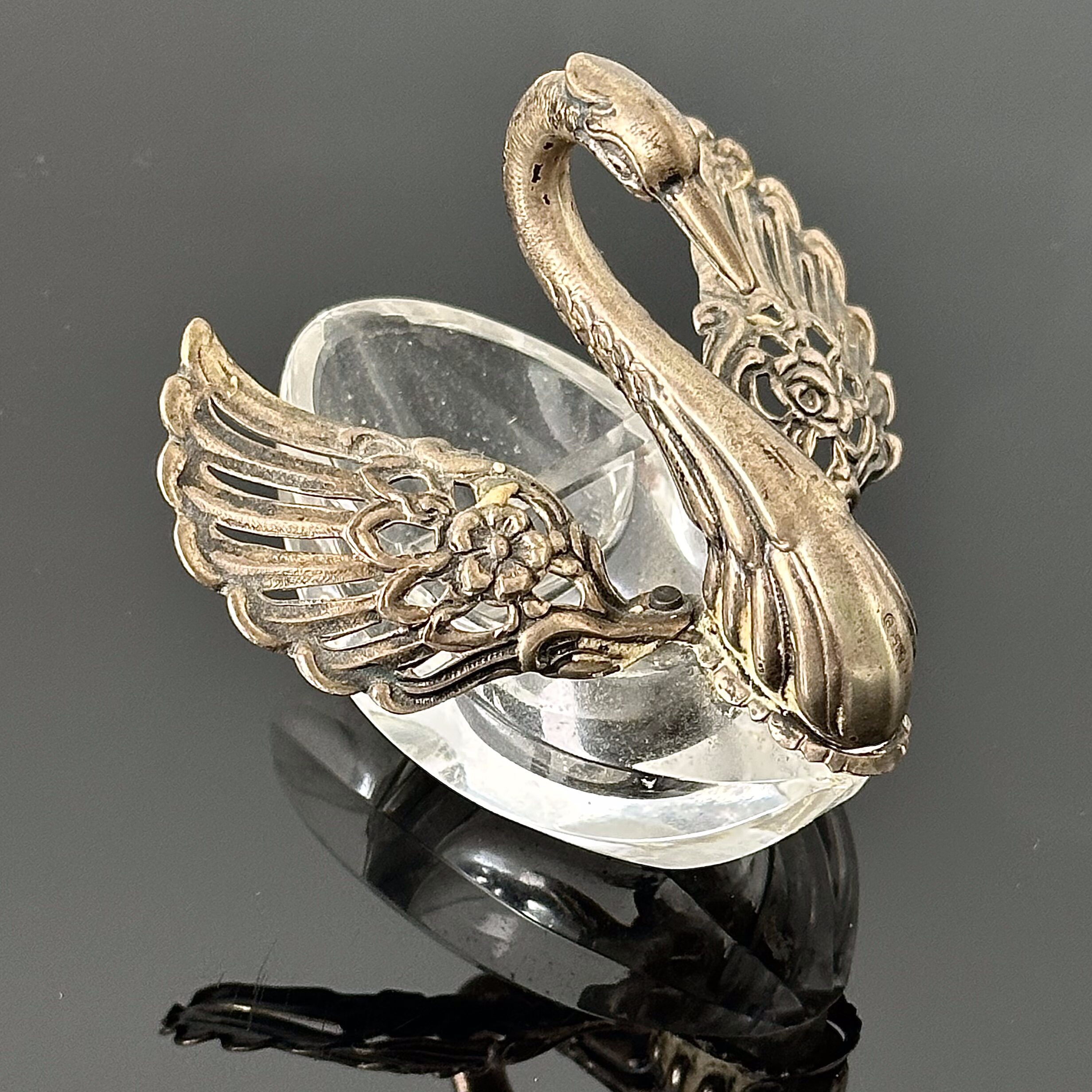 Srebrna solniczka z pieprzniczką, łabędź