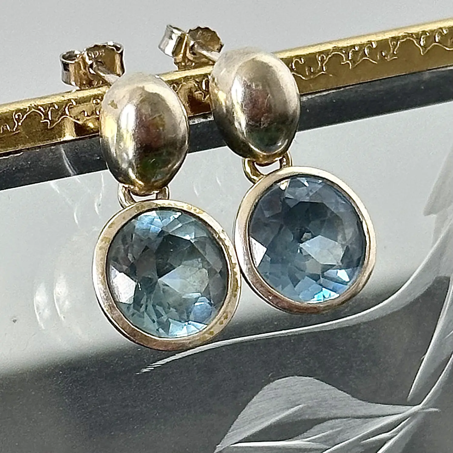 Srebrne kolczyki Art Deco z naturalnym Akwamarynem