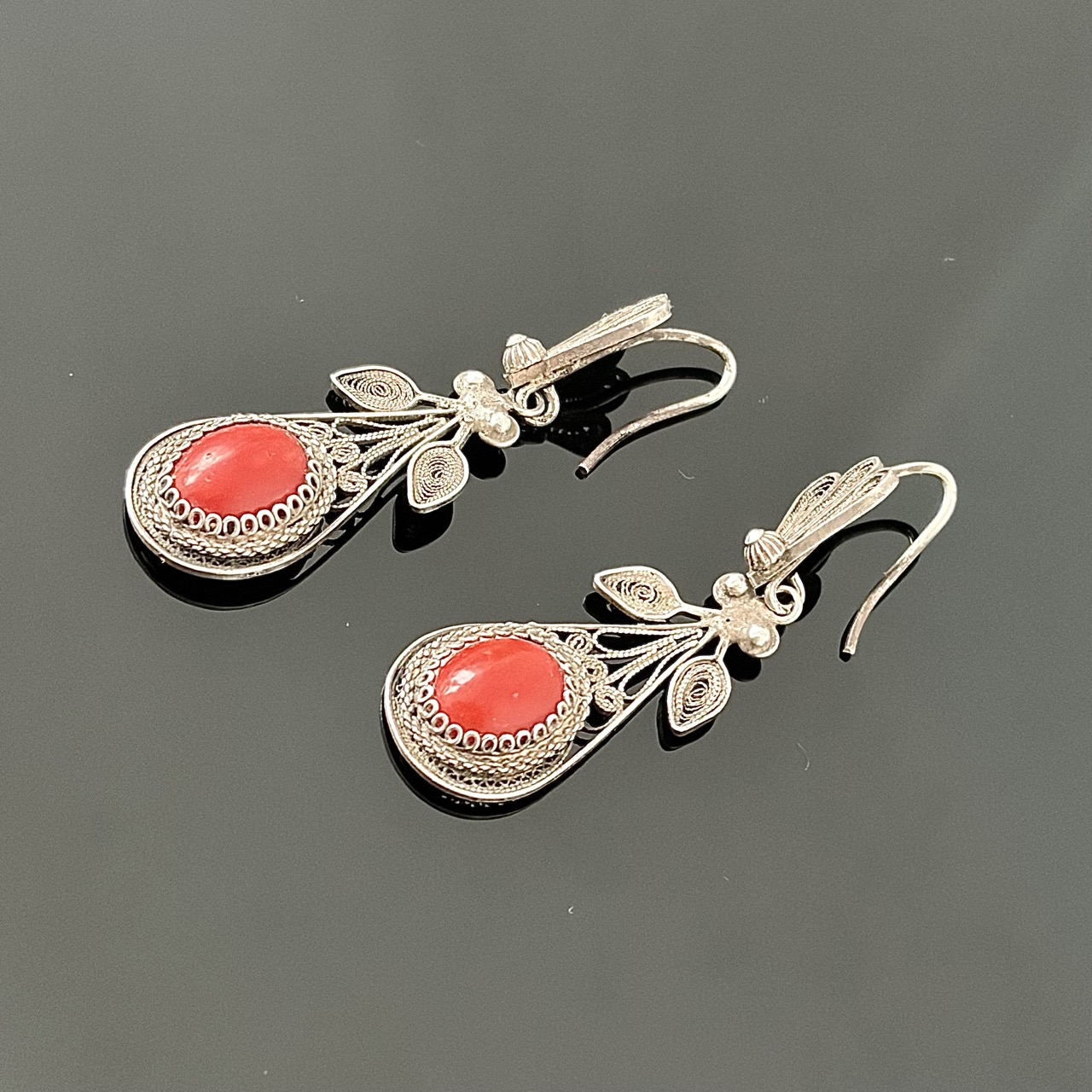 Srebrne kolczyki filigranowe z naturalnymi koralami