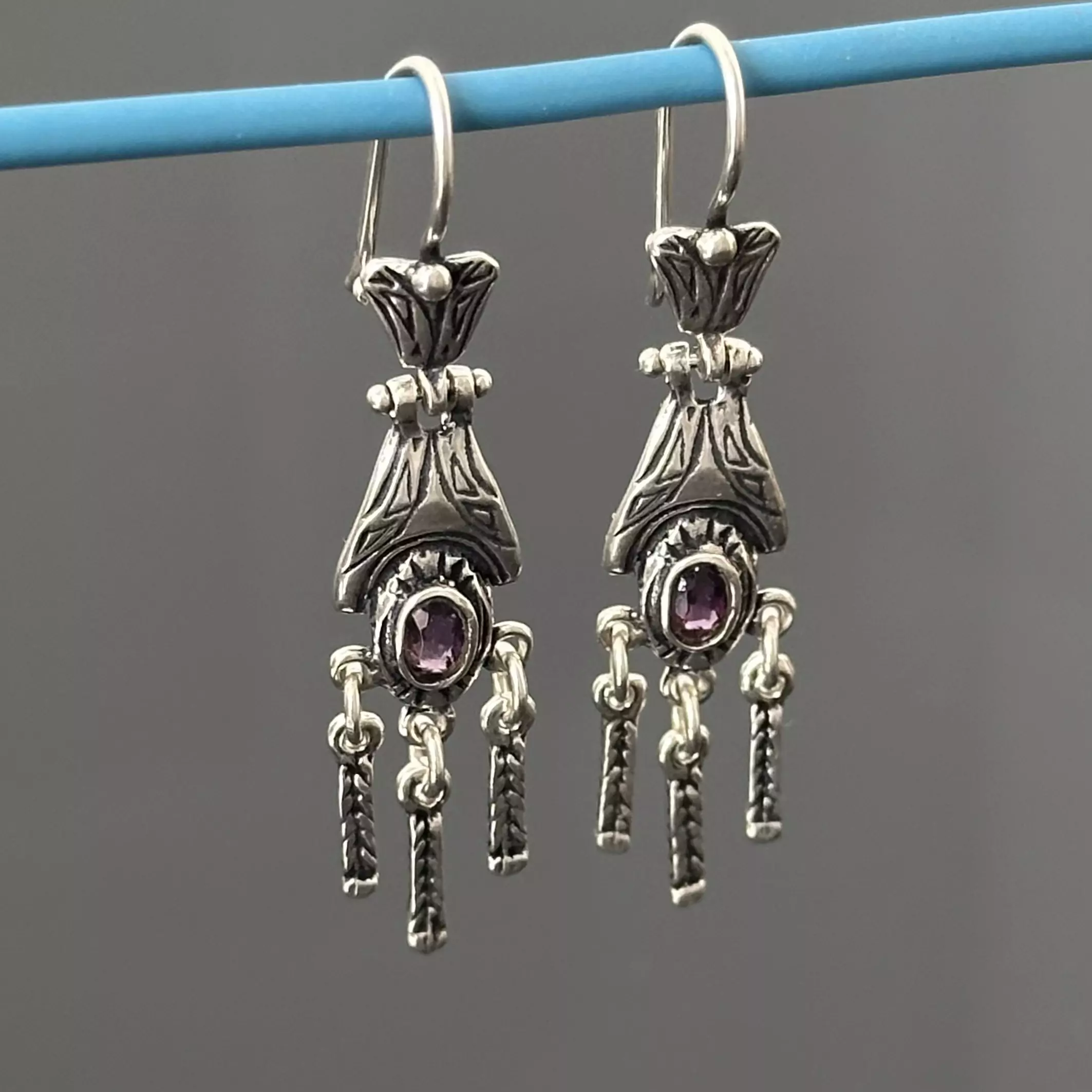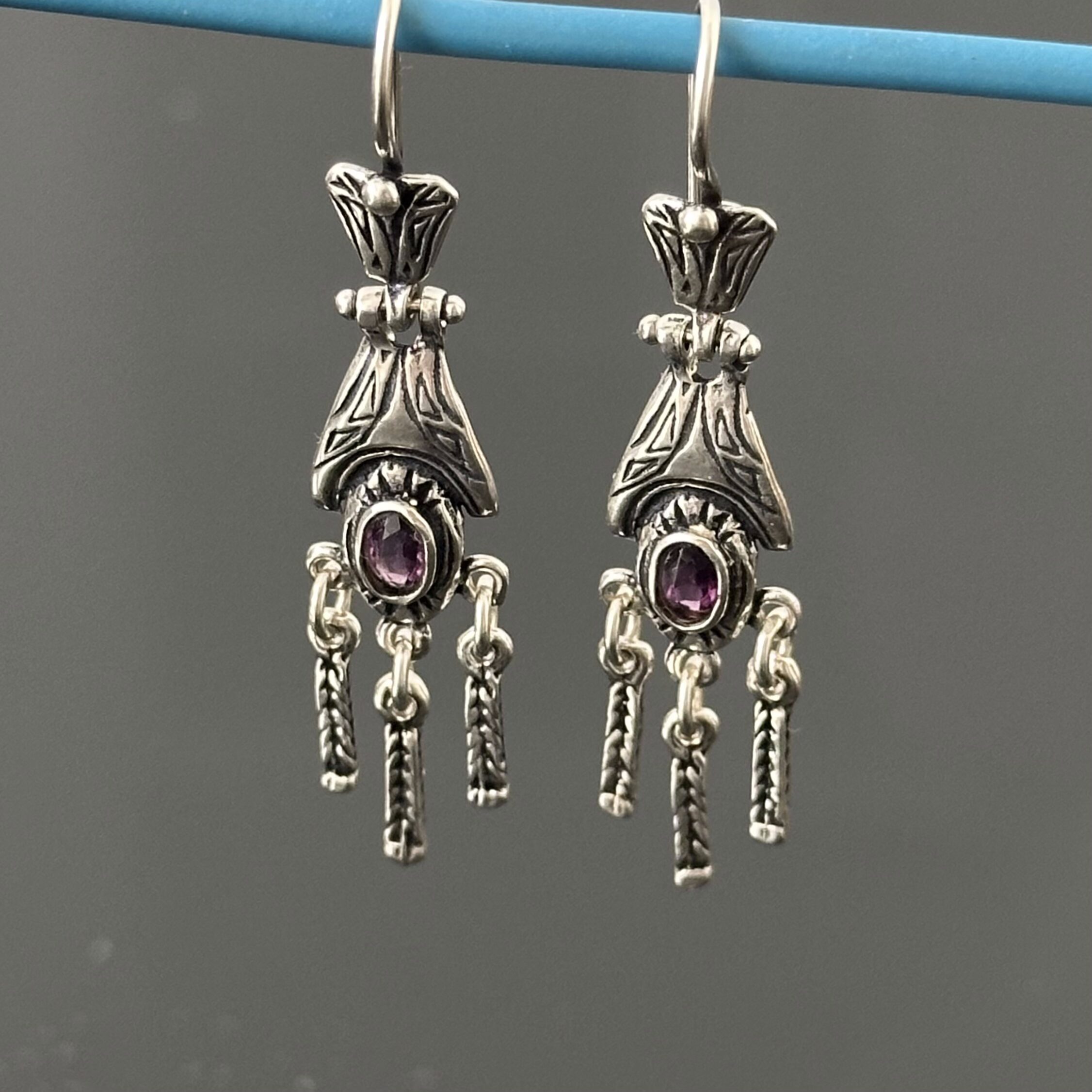 Srebrne kolczyki secesyjne z Ametystem