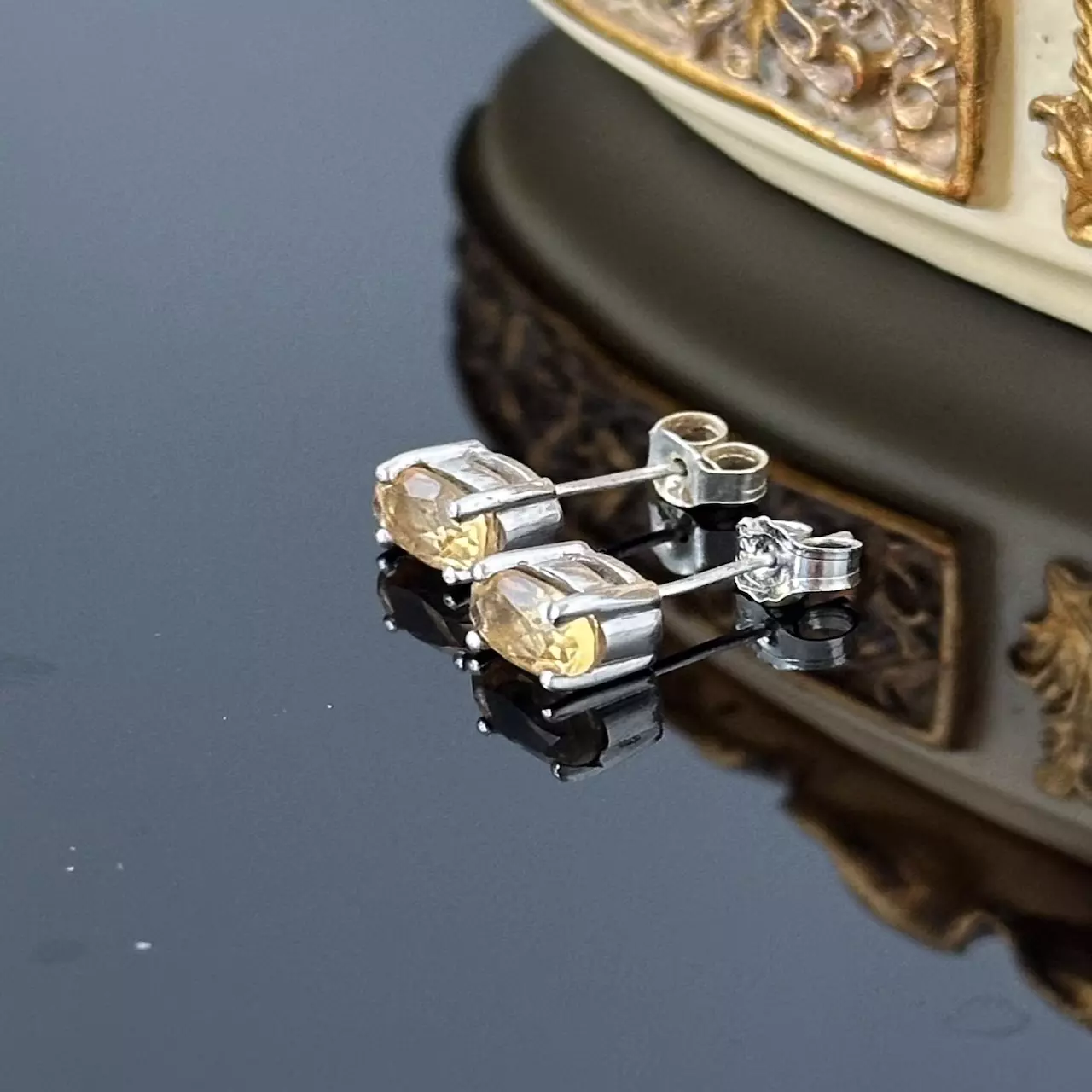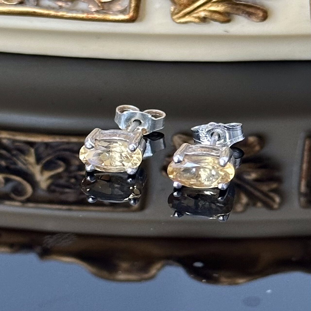 Srebrne kolczyki z Cytrynem, bardzo precyzyjnie wykonane z wielką dbałością o szczegóły. Projekt ten został wykonany z srebra próby 925. Kolczyki znajdują się w bardzo dobrym stanie, bez śladów użytkowania.