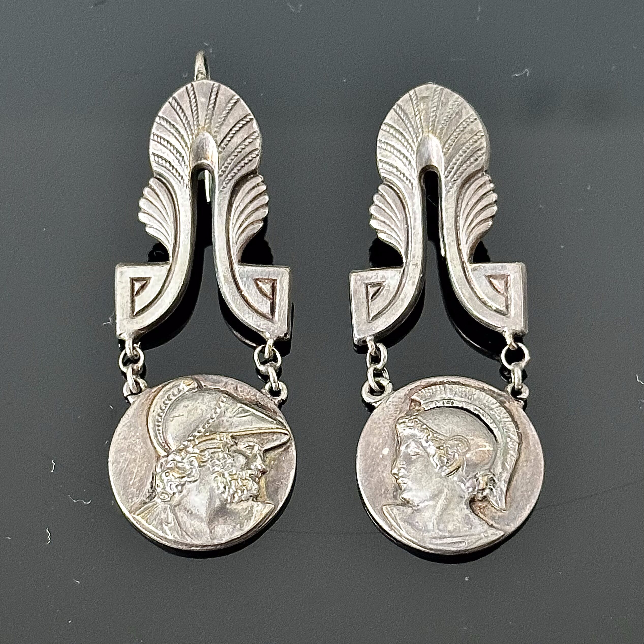 Secesyjne kolczyki posrebrzane z mitologicznymi motywami, oryginały z ok. 1900 roku , wykonane z mosiądzu zostały posrebrzone próbą srebra 800. Wyjątkowo realistyczny projekt wykonany z wielką dbałością o szczegóły, zdecydowanie polecamy dla miłośników i kolekcjonerów okresu secesji. Kolczyki pozostawiłem w swoim oryginalnym nie czyszczonym i nie wypolerowanym stanie.
