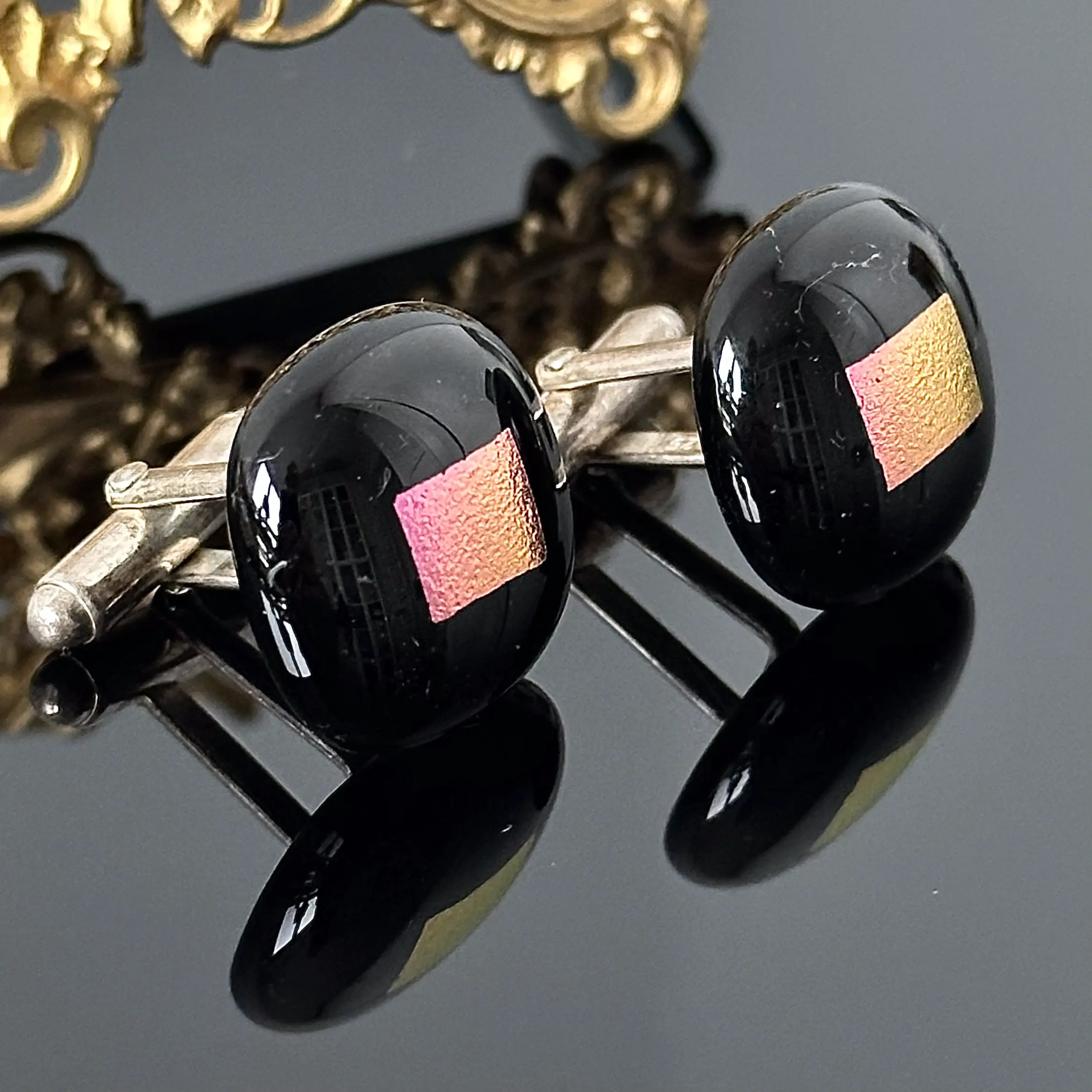 Srebrne spinki do mankietów z emalią – motyw harfy