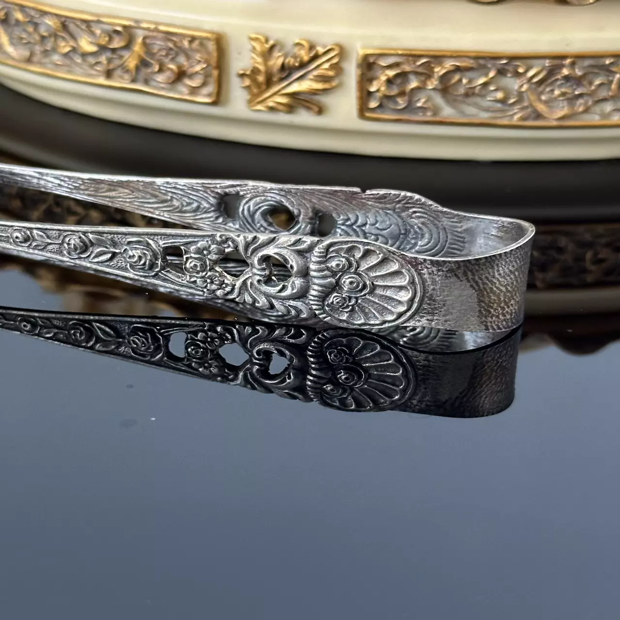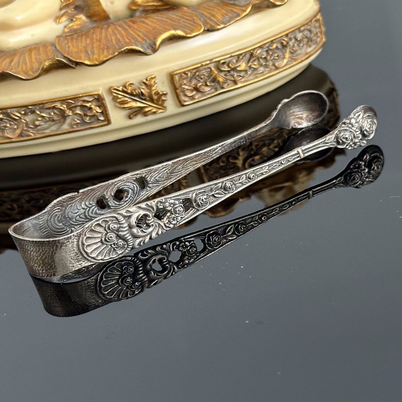 Srebrne szczypce secesyjne do cukru