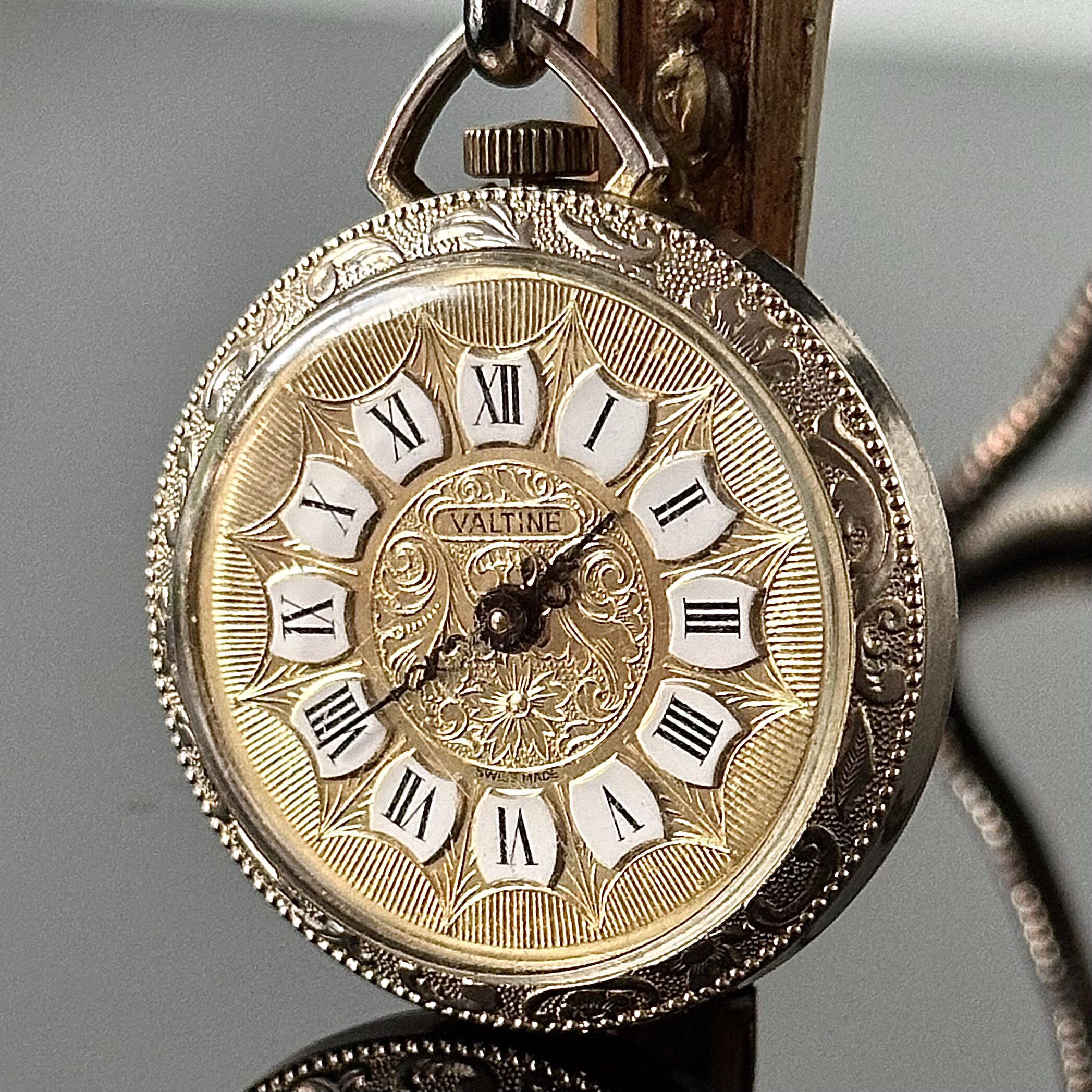 Złoty 18 karatowy zegarek kieszonkowy z dewizką
