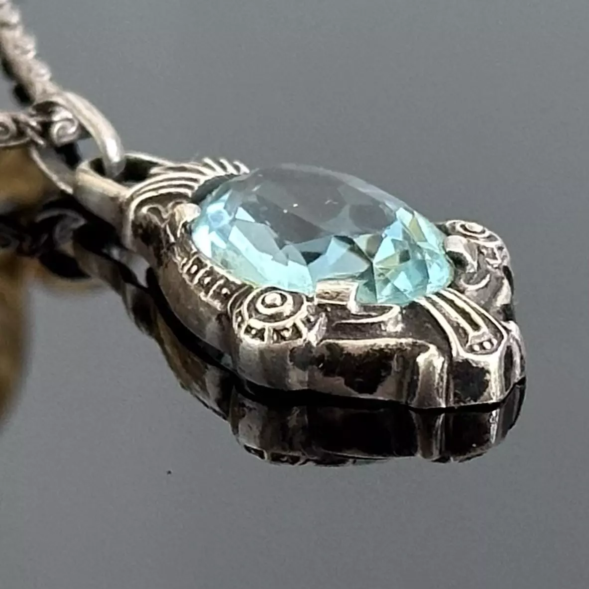 Srebrny naszyjnik z Akwamarynem lub niebieskim Spinelem - oryginał z ok 1880 roku.