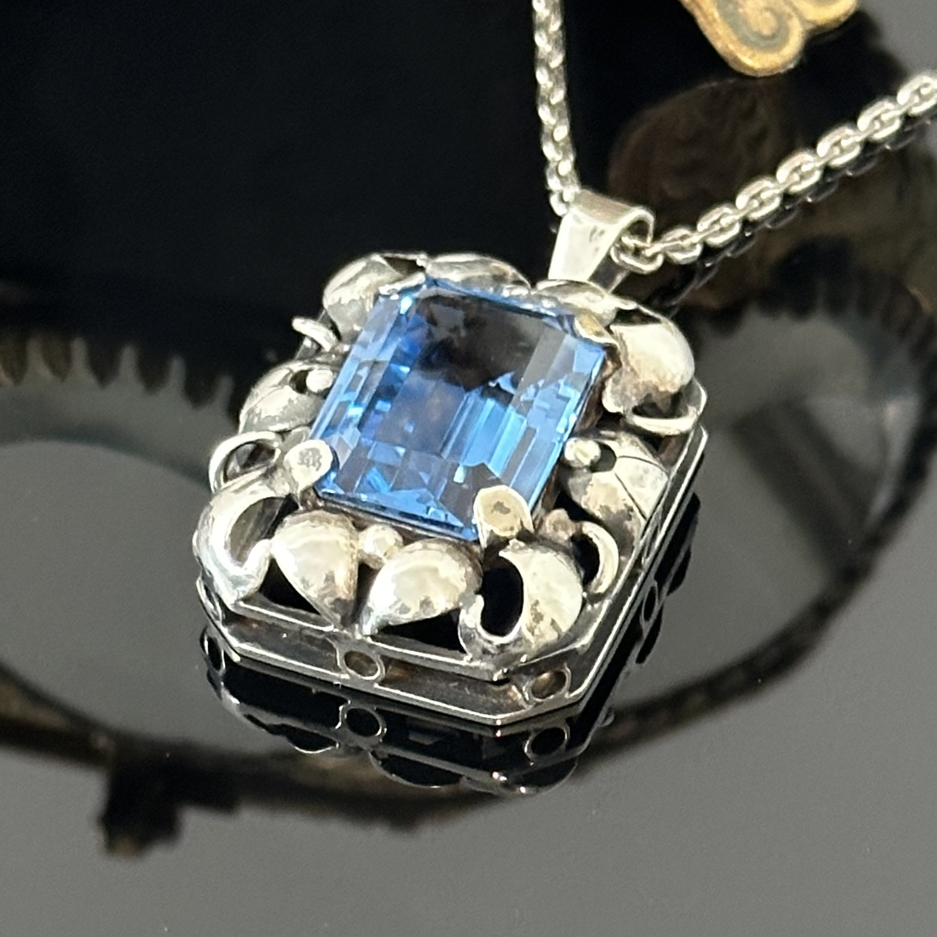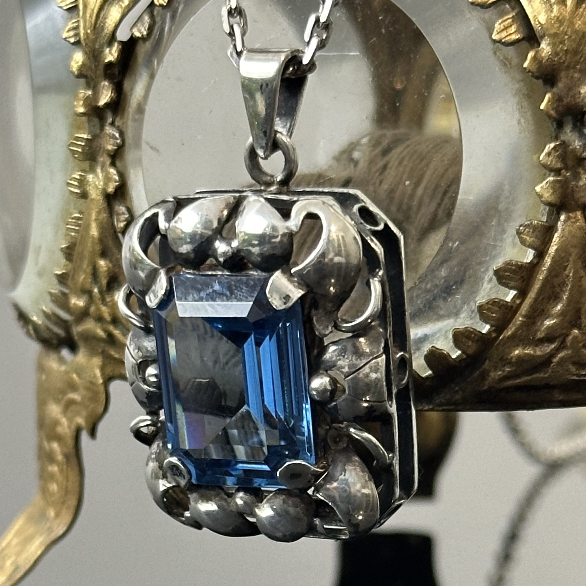Srebrny naszyjnik z Akwamarynem z około 1900 roku