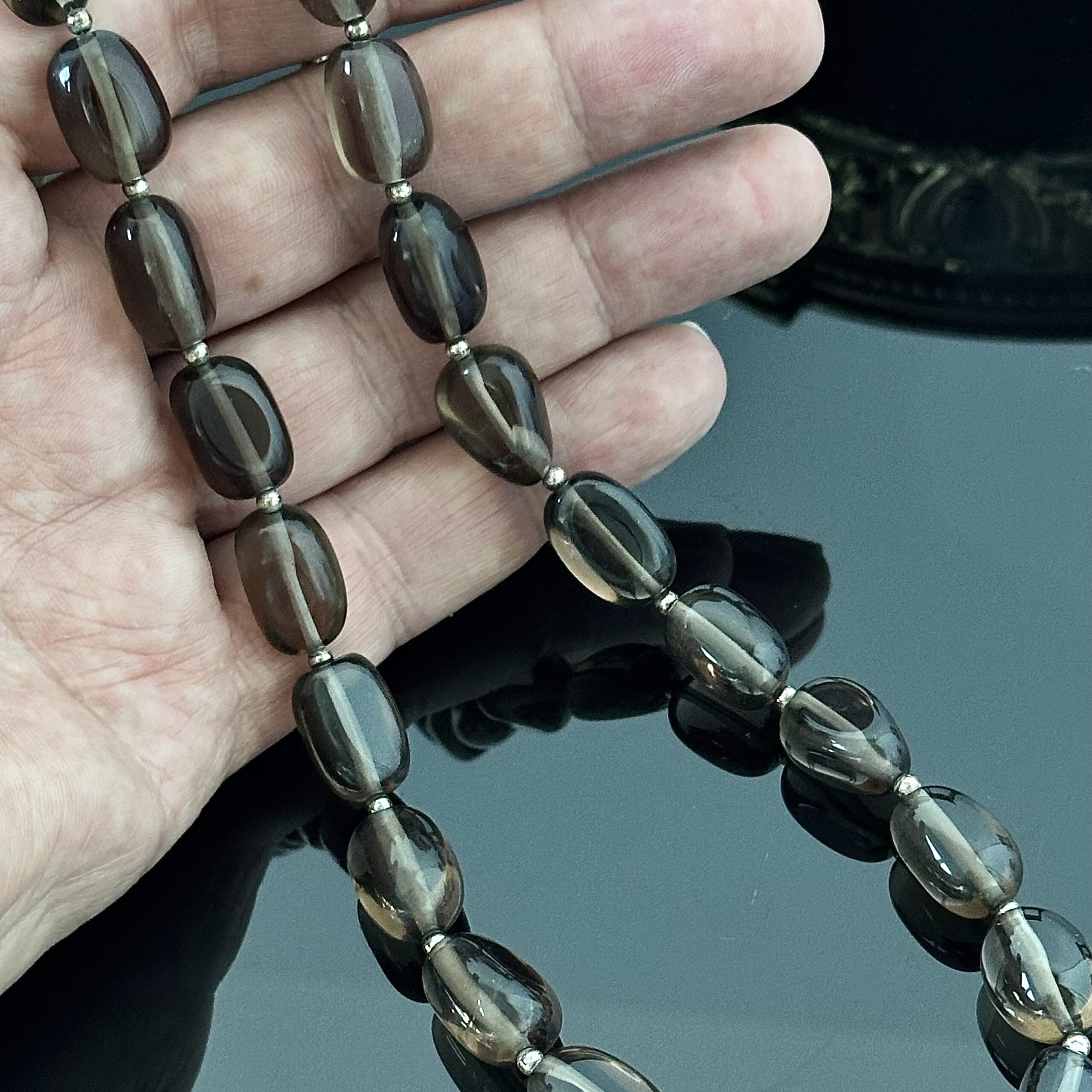 Srebrny naszyjnik z naturalnym dymnym Topazem