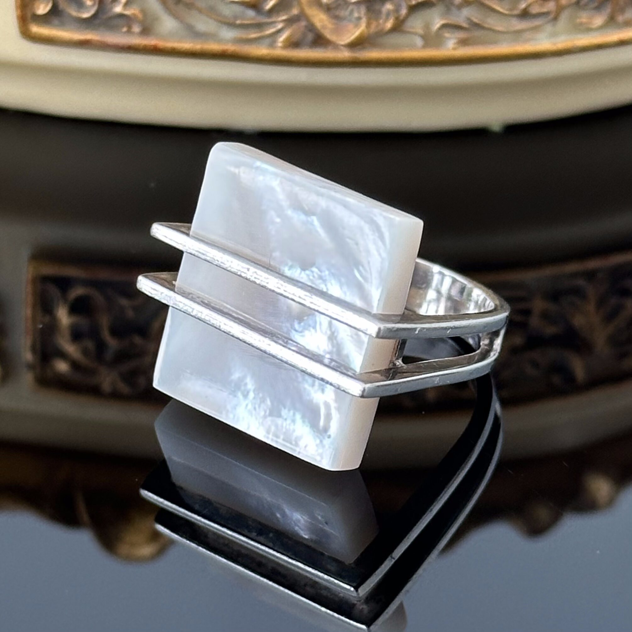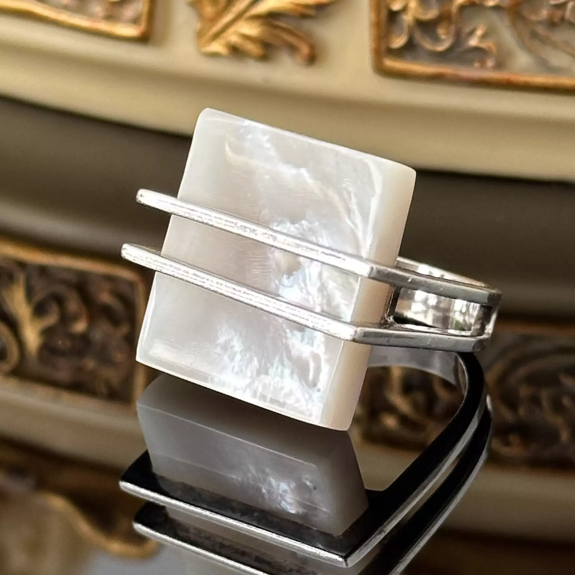 Srebrny pierścionek Art Deco z Macicą Perłową