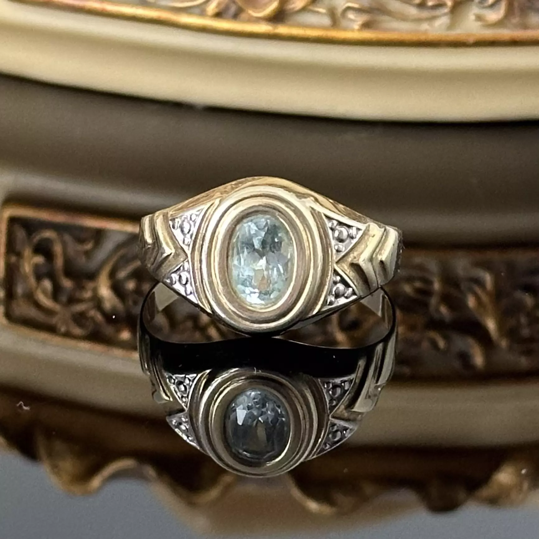 Srebro próby 925 pozłacane, próba bita, centralnie zawasowany Akwamaryn