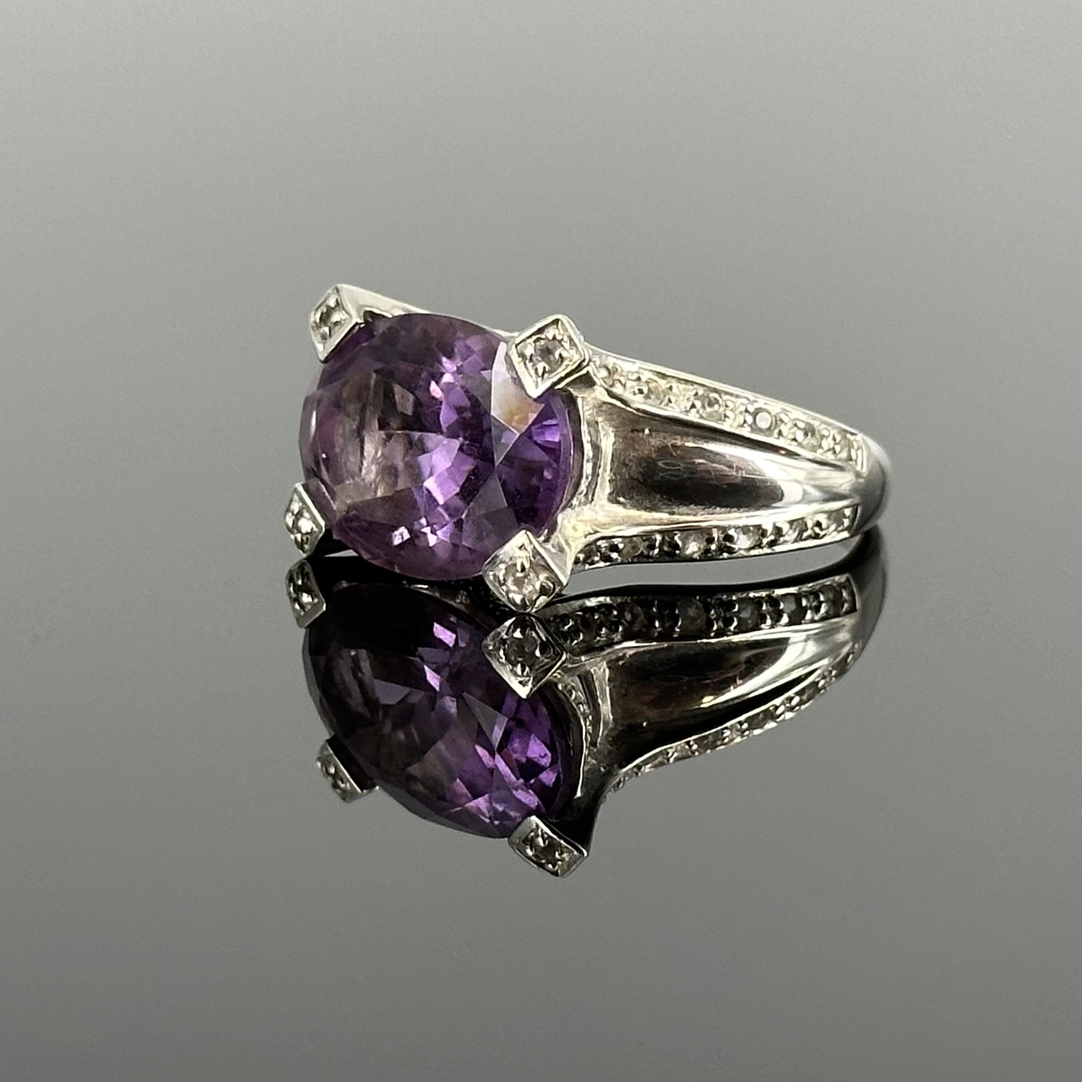 Srebrny pierścionek z Ametystem i Cyrkoniami