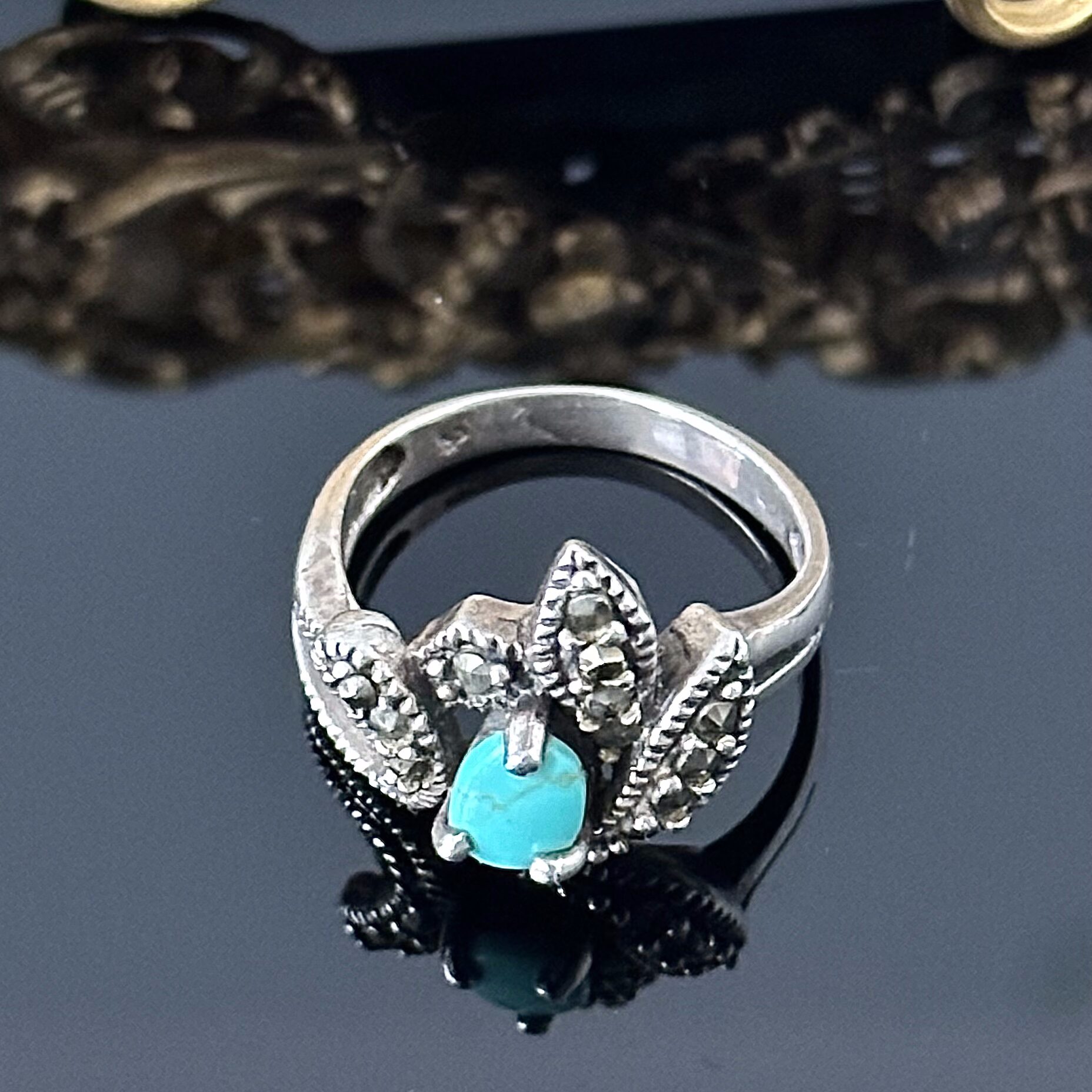 Srebrny pierścionek z naturalnym Turkusem i Markazytami