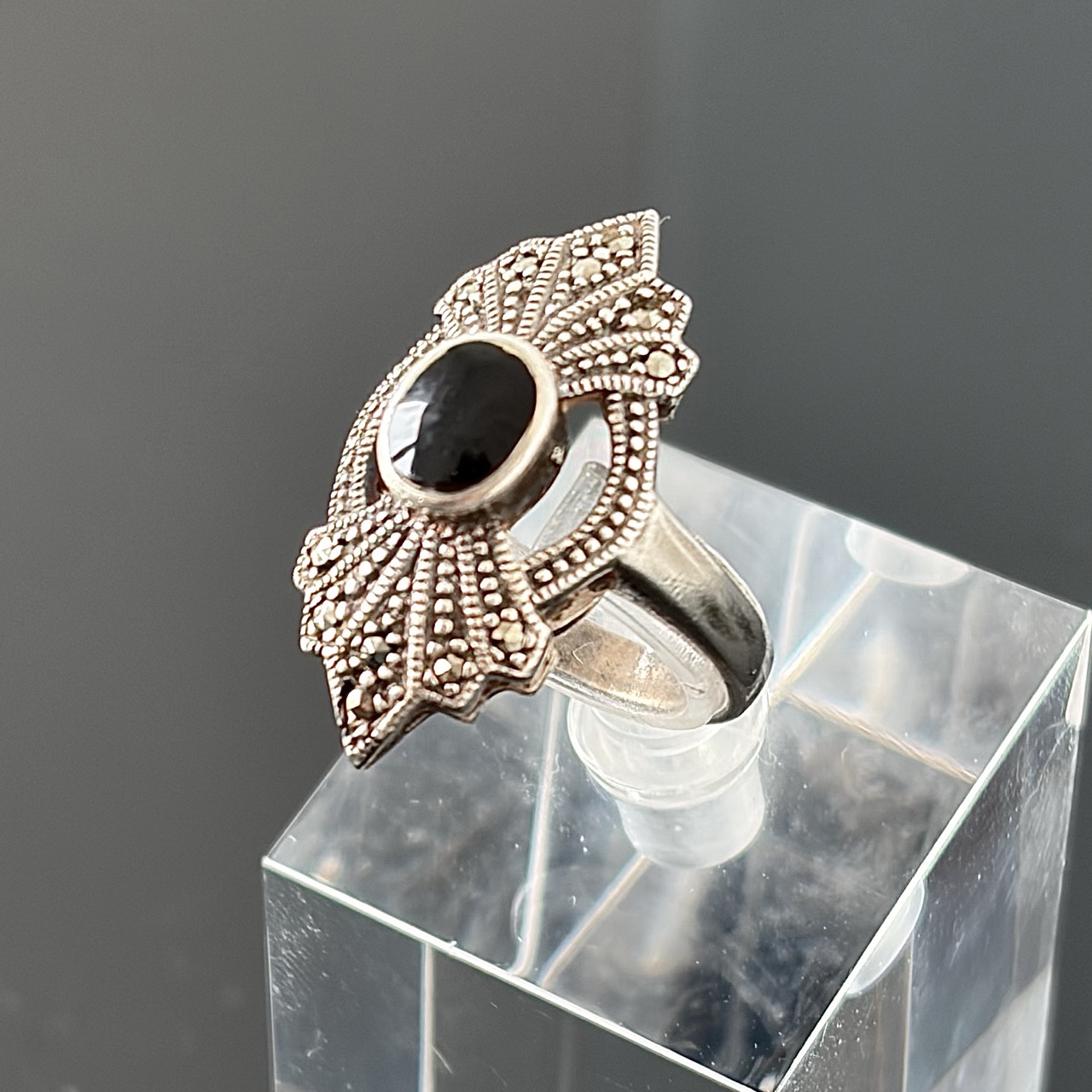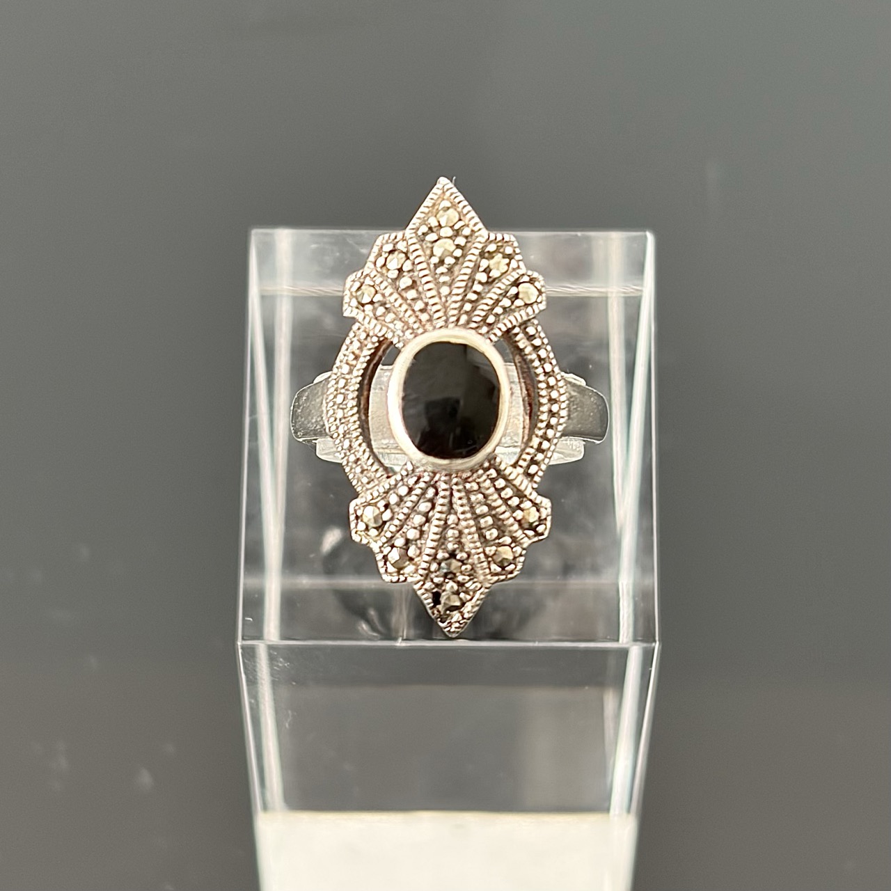 Srebrny pierścionek z Onyksem i Markazytami