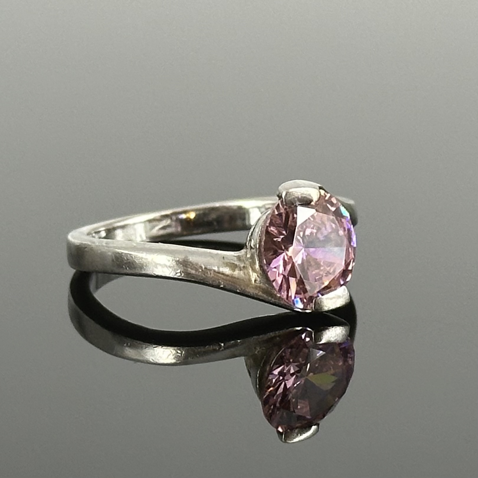 Srebrny pierścionek z Różowym Topazem. Ten klasyczny dla sztuki jubilerskiej pierścionek został wykonany z srebra próby 925. Pierścionek znajduje się w dobrym stanie, bez uszkodzeń, kamień i fasety bardzo ostre bez zmatowień lub zaokrągleń, zalecam prze polerować srebro. Różowy Topaz. Wysoko ceniony w jubilerstwie kamień szlachetny z grupy krzemianów - bardzo twardy, ciężki i rzadko spotykany. Charakteryzuje się ogromnym bogactwem barw występujących w naturze. Topazy różowe, zaraz po Topazie żółtym należą do najwyżej cenionych w jubilerstwie. Topaz różowy może mieć barwę bladego różu lub intensywną ciemnoróżową. Są dwie teorie na temat pochodzenia nazwy tego kamienia. Pierwsza mówi o tym, iż pochodzi od sanskryckiego słowa „tapza” oznaczającego „ogień”, inna że pochodzi od starogreckiej nazwy wyspy Topázios (lub Tapasos), skąd pochodziły jego najstarsze okazy (ale do dziś nie ma 100% pewności, iż były to prawdziwe topazy). Właściwości: Topaz Różowy będzie doskonały jako element biżuterii dla osób wyjątkowo wrażliwych, mających tendencję do zamykania się w sobie z własnymi problemami. Osoby, którym trudność sprawia dawanie i przyjmowanie miłości czy przyjaźni będą miały odwagę otworzyć się i znaleźć dużą satysfakcję w dzieleniu się tymi uczuciami z innymi. Różowy Topaz otwiera także centrum wrażliwości na piękno natury, muzyki i sztuki. Jest to idealny kamień dla artystów, osób kreatywnych wszystkich branż, a także pracujących na co dzień ze sztuką, muzyką, malarstwem, fotografią czy grafiką. Topaz wg medycyny niekonwencjonalnej: • Przeciwdziała stanom wyczerpania i depresji. • Opóźnia proces starzenia i sprzyja długowieczności. • Przynosi ulgę przy bólach głowy i migrenach. • Łagodzi ataki epilepsji, podagry i astmy. • Łagodzi choroby przewodu pokarmowego i wątroby. • Pomaga obniżyć zbyt wysokie ciśnienie krwi. • Pomocny przy leczeniu gruźlicy. • Ułatwia szybkie zasypianie, zapewnia mocny sen.