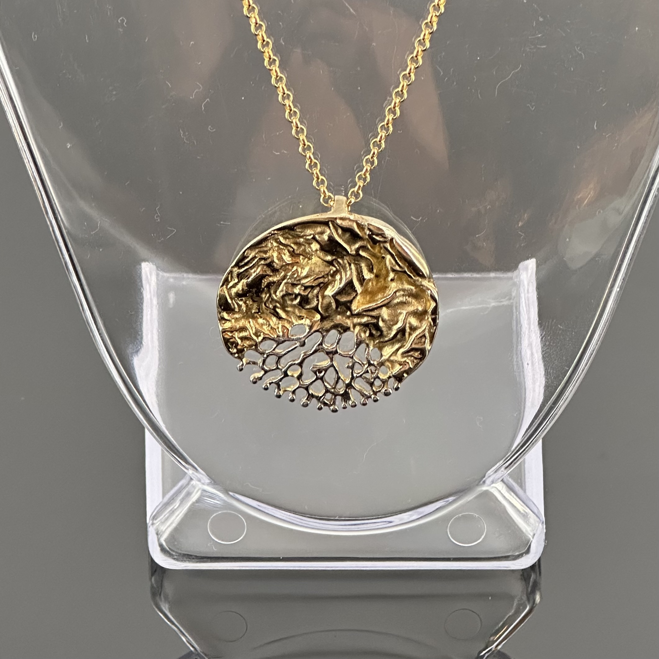 Ten artystyczny naszyjnik został wykonany z srebra próby 925 i pozłacany 24 karatowym złotem