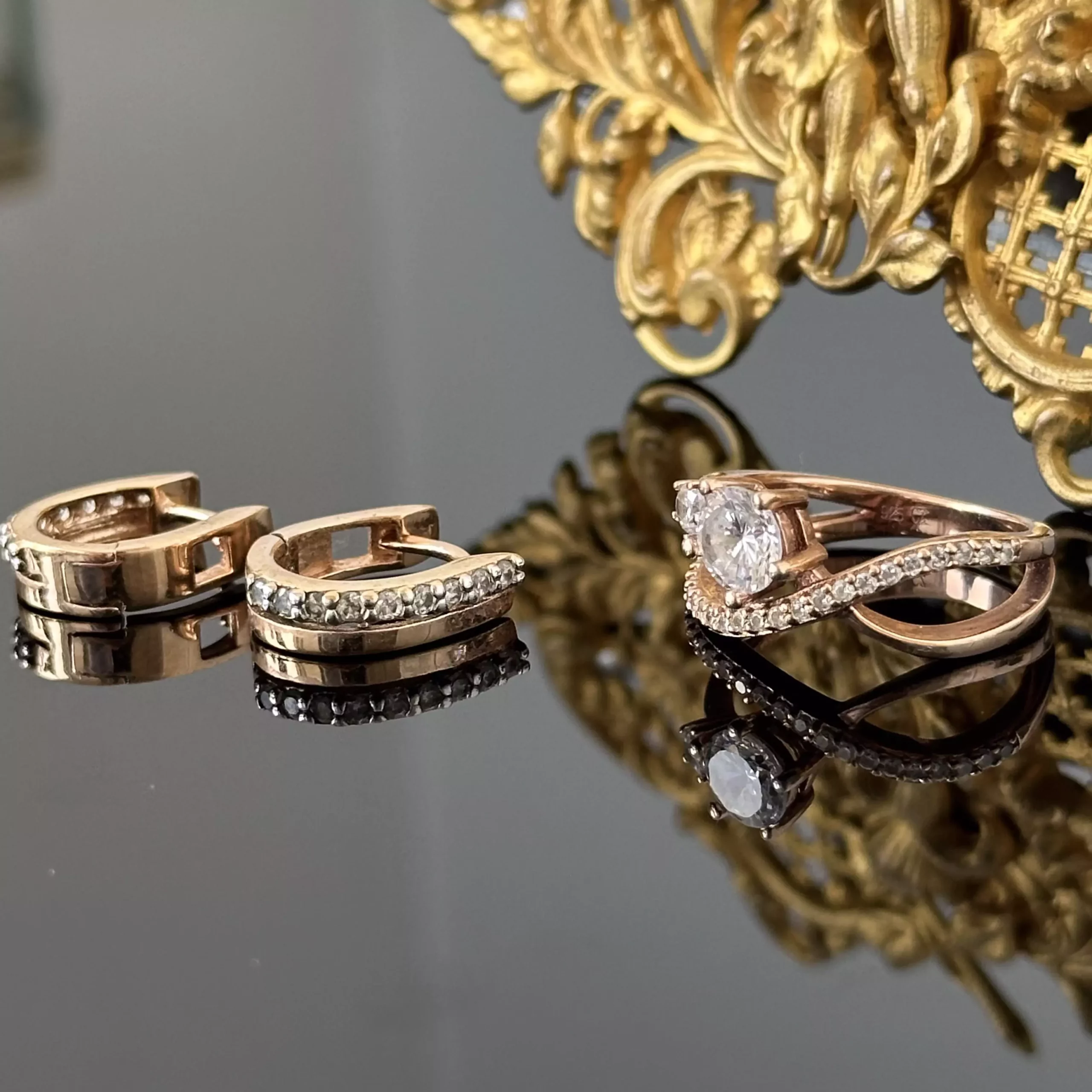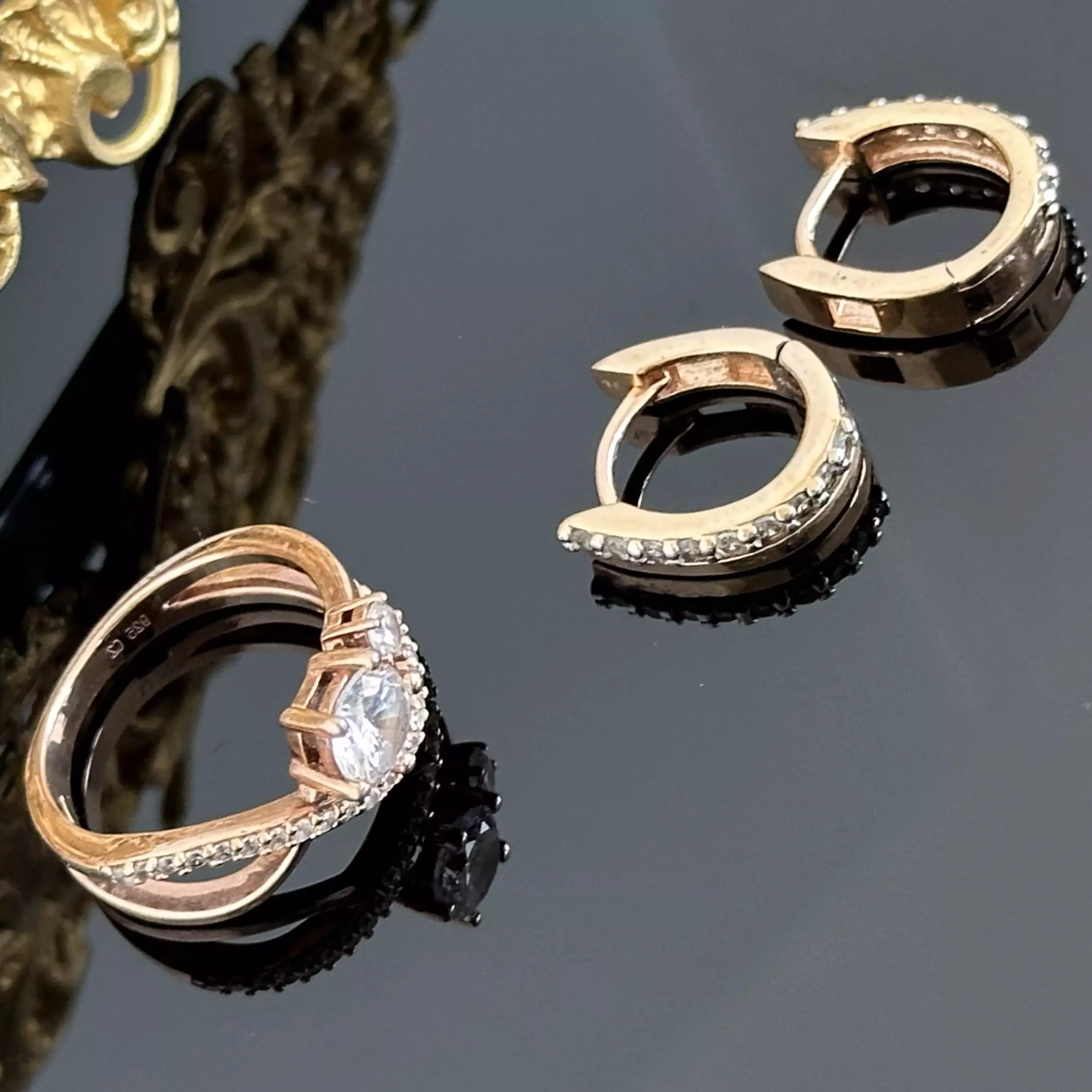 Srebrny pozłacany komplet kolczyków z pierścionkiem
