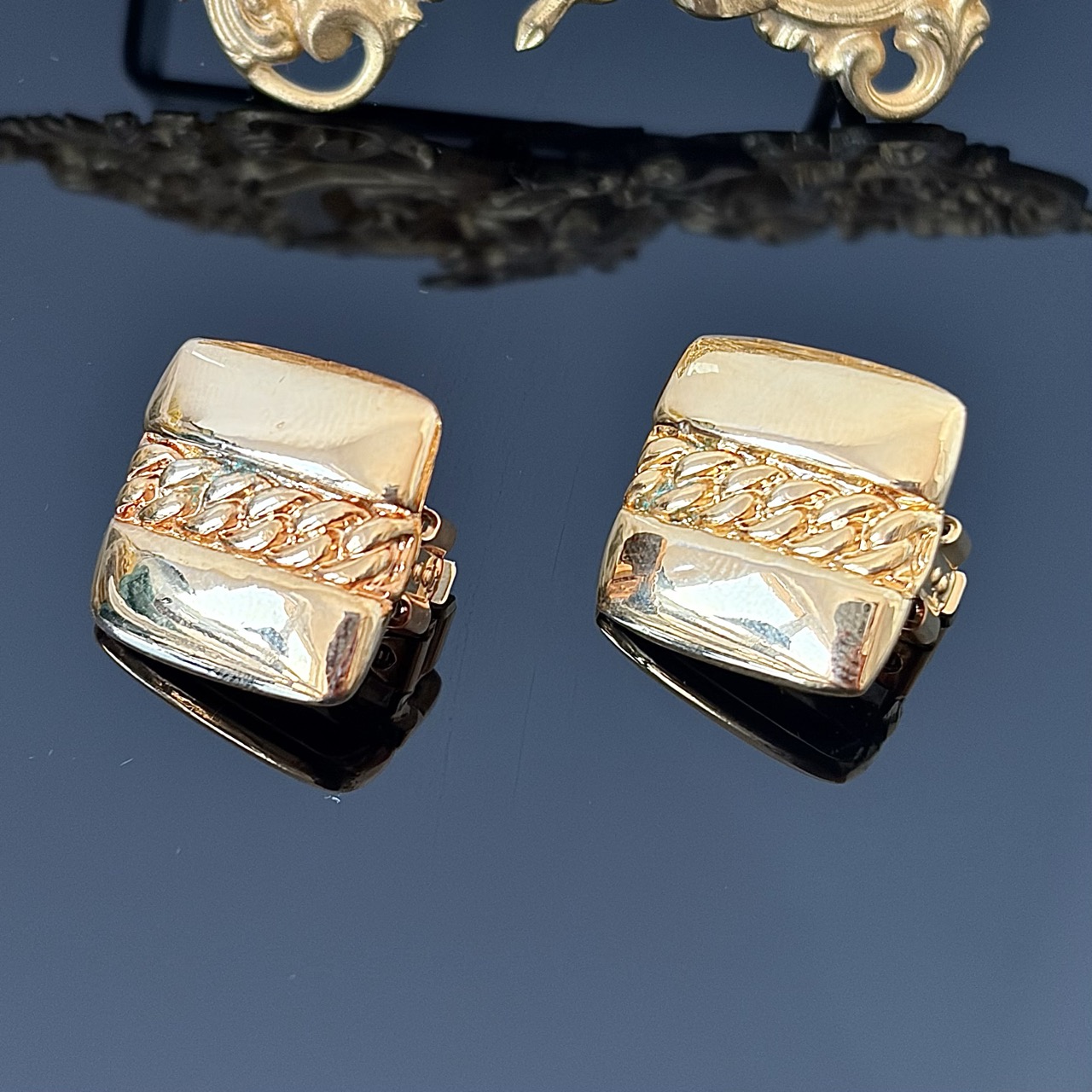 Złote klipsy z motywem łańcucha