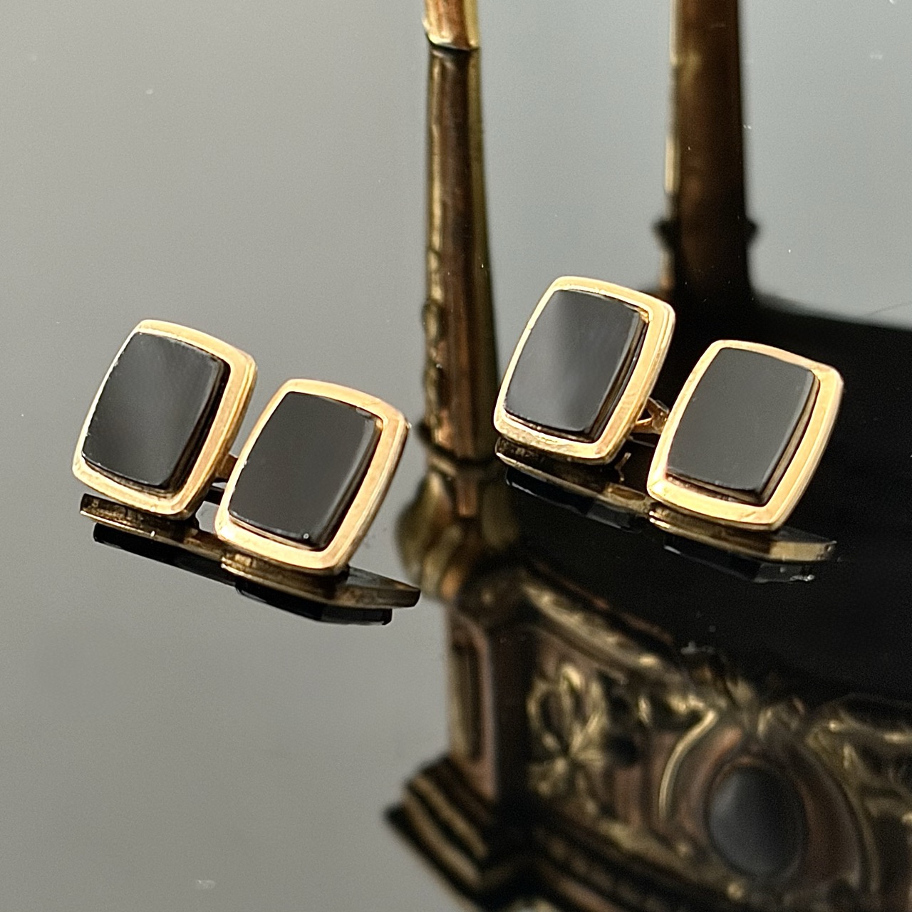 Złote spinki do mankietów z czarnym Onyksem