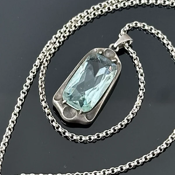 Secesyjna Srebrna zawieszka z Akwamarynem